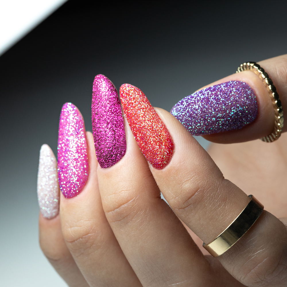 Dzięki temu, że pyłki z reguły występują w nieregularnych kształtach i różnych kolorach, w ogóle nie musisz się martwić o to, czy nie będą wyglądać źle na paznokciach. Co ważne – za każdym razem, nawet aplikując pyłki tą samą metodą, uzyskasz inny efekt manicure! To ogromny plus – szczególnie dla dziewczyn, które nie lubią “nudy” w stylizacji paznokci!