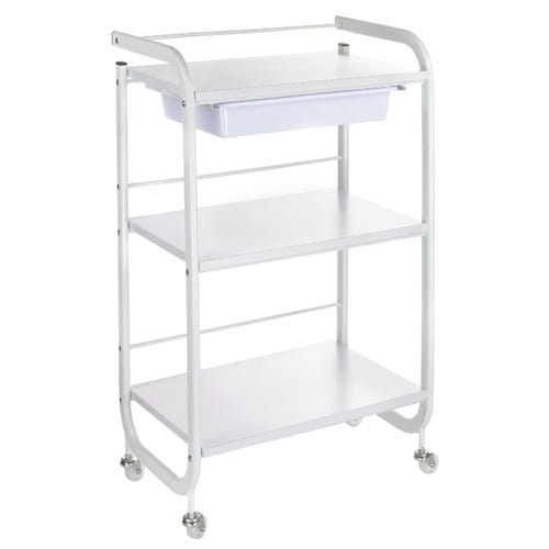 Szafka kosmetyczna NG-ST027 jest wyposażona w kółeczka, dzięki czemu można ją szybko i łatwo przesunąć w dowolne miejsce. Trzy duże półki, solidność konstrukcji oraz 12 miesięcy gwarancji to atuty prezentowanego modelu. Inwestuj tylko w najlepsze meble SPA.