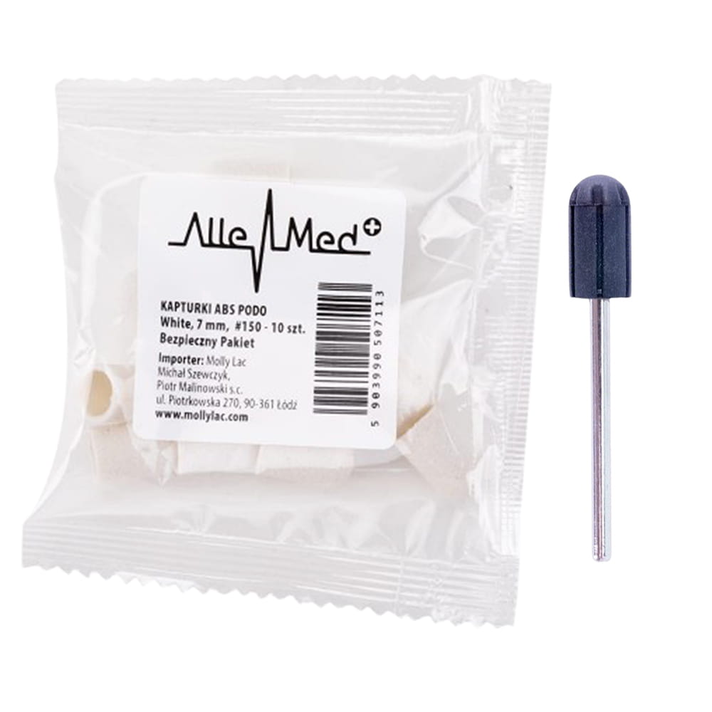 Kapturki ścierne do pedicure 7 mm gradacja 150 10 szt ABS Podo AlleMed Biały White + Nośnik Trzpień gratis