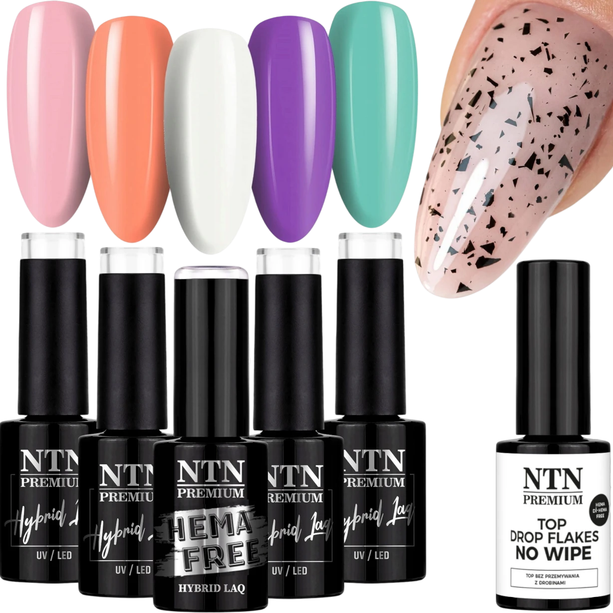 5x Lakier Hybrydowy NTN 5g Wiosna Spring Pastele + Top Przepiórcze Jajko