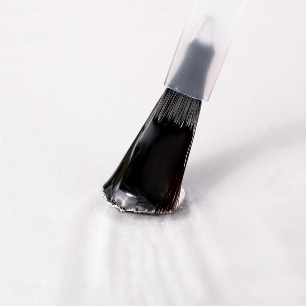 - Na pomalowany paznokieć lakierem hybrydowym lub żelem nanieść produkt, kończąc na środkowej linii paznokcia, by uzyskać idealną linię światła.