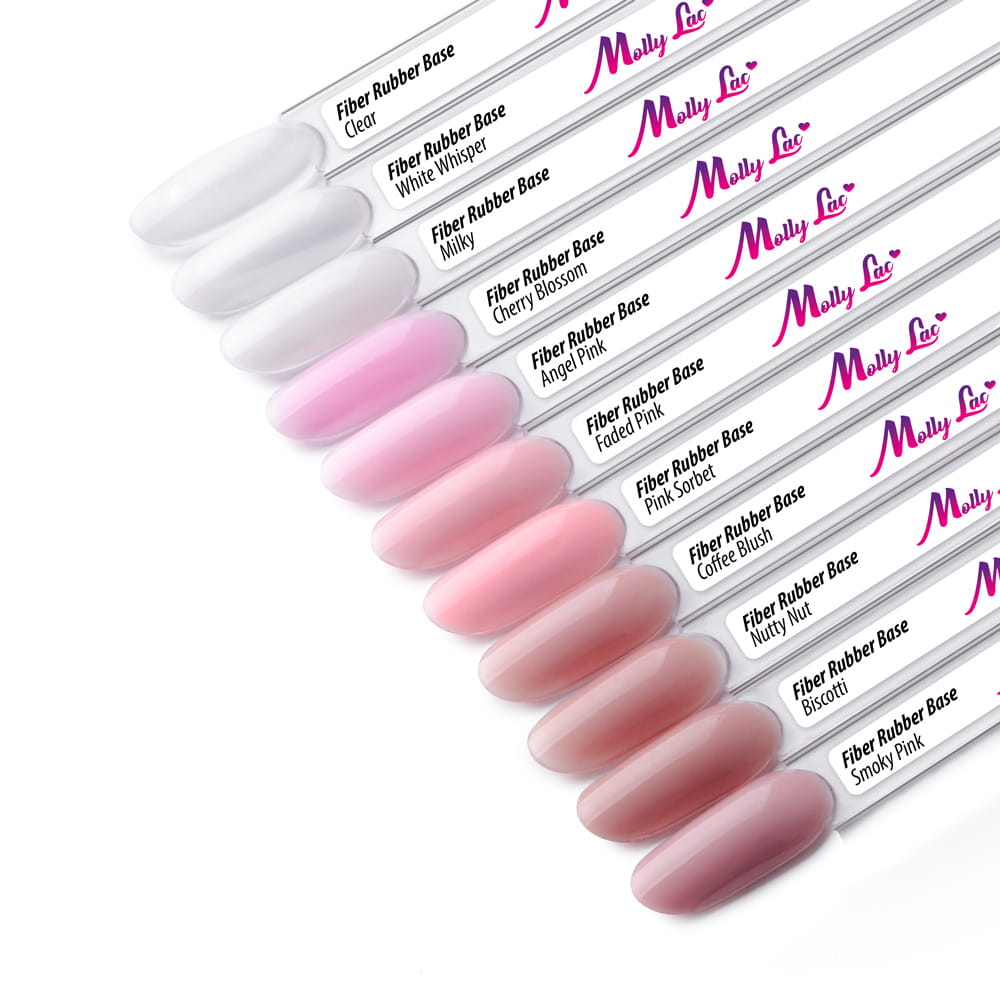 Baza kauczukowa z włóknami do manicure i pedicure 2w1 Fiber Rubber Base MollyLac Pink Sorbet HEMA/Di-HEMA Free 10g