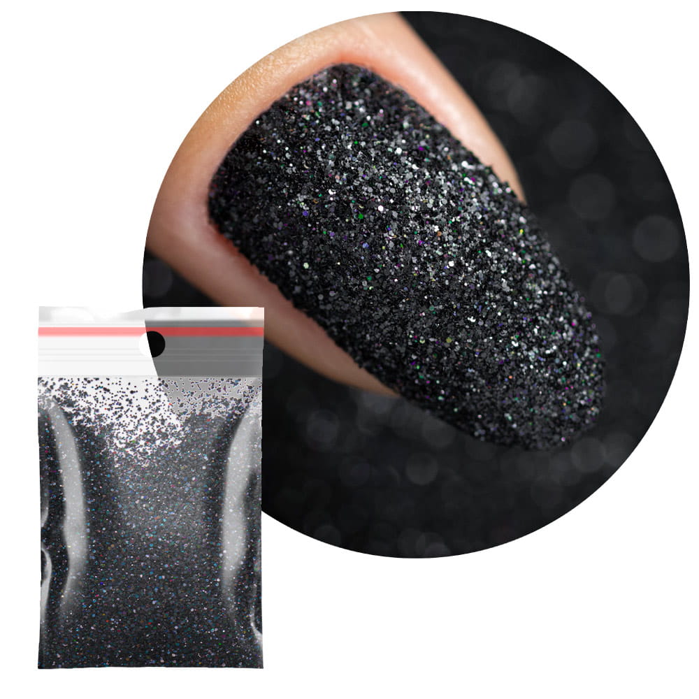 32. Czarny brokat z opalizującą drobiną.