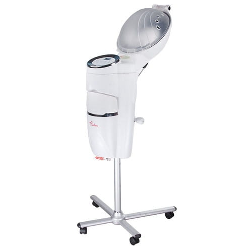 Nawilżacz - sauna nawilżająca - na statywie. Przyspiesza i wspomaga działanie preparatów pielęgnacyjnych. Skraca czas wykonywania zabiegów chemicznych (koloryzacja) oraz wszelkich zabiegów pielęgnacyjnych. Mgiełka nawilżająca ma korzystny wpływ na pielęgnację skóry głowy oraz włosów. Dzięki drobnej mgiełce można uzyskiwać głębsze nawilżenie włosów oraz skóry głowy. Klient bezpośrednio po zabiegu odczuwa komfort skóry głowy, skóra jest nawilżona, nie łuszczy się a włosy stają się miękkie i bardzo mocno nawilżone. Urządzenie niezwykle proste w obsłudze i montażu.