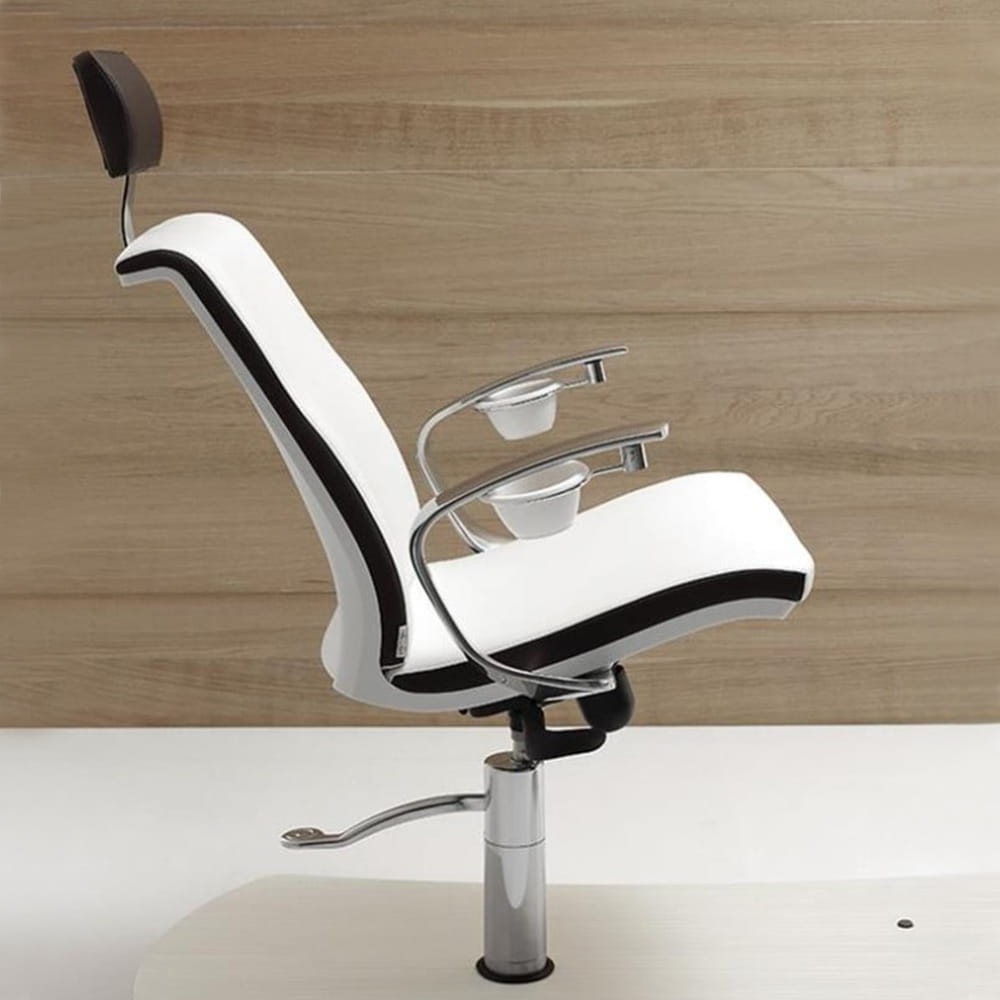 - Oparcie posiada wygodny zagłówek i istnieje możliwość zmiany jego kąta nachylenia. Ułatwia to dobranie odpowiedniej pozycji, w której mamy możliwość wykonania doskonałego zabiegu pedicure.