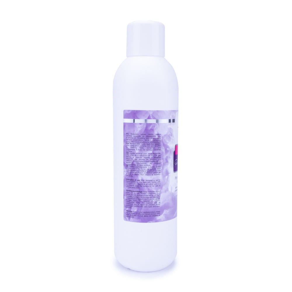 Wysokiej jakości płyn do odtłuszczania płytki paznokcia oraz usuwania warstwy dyspersyjnej lakieru hybrydowego, masy żelowej i akrylożelu o bardzo przyjemnym zapachu.
