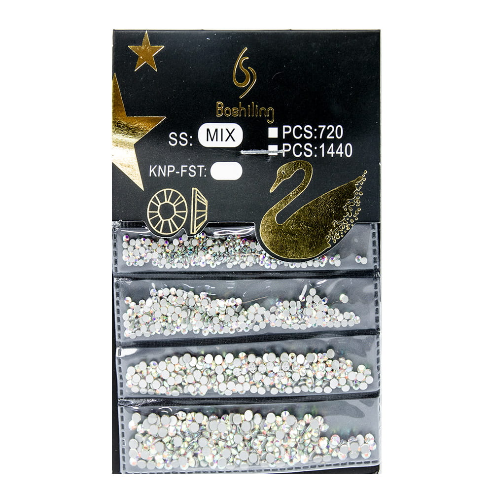 Cyrkonie do paznokci szklane C-4 mix rozmiarów 1440 szt paczka