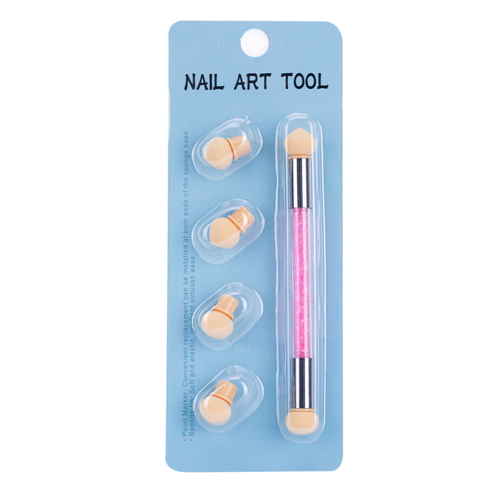 Dwustronny pędzel gąbka do ombre i nail art z cyrkoniami różowy