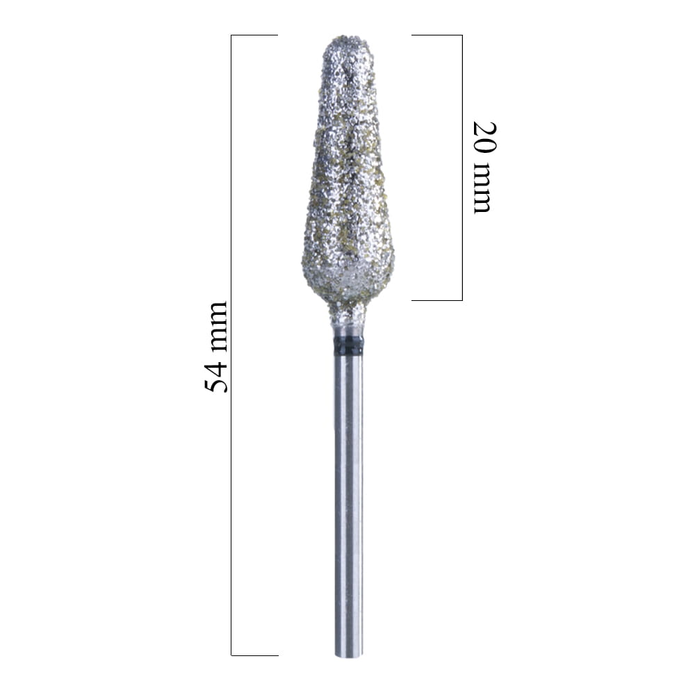 Frez podologiczny o bardzo wysokiej jakości i nasypie diamentowym o wysokiej ostrości. Wykonany z najlepszych komponentów produkt przeznaczony do zabiegów pedicure. Gruba ziarnistość i średnica części roboczej zwęża się od 8mm do 4mm na wierzchołku. Idealnie sprawdza się przy usuwaniu bardzo silnych zrogowaceń oraz przy pracy z twardym, zrogowaciałym naskórkiem. Frez wyposarzony jest w system krzyżowych rowków, dzięki czemu nie zatrzymuje się w trakcie pracy, nie utrzymuje zabrudzeń i gwarantuje komfortową pracę.