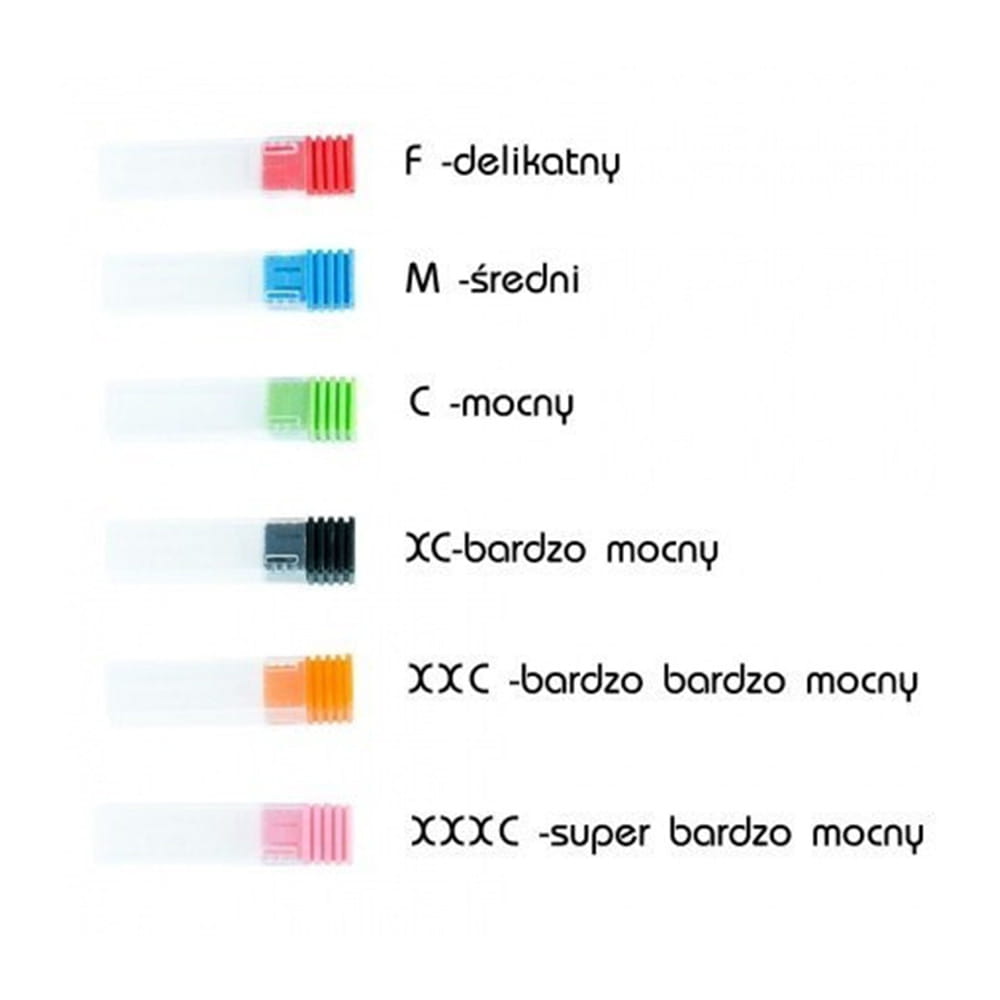 Dzięki swojej budowie najlepiej sprawdzi się do opracowywania wszystkich mas stylizacji (czerwony - początkujący, niebieski - średniozaawansowany, zielony - zaawansowany) , podczas korekty paznokci rosnących w dół, a także do wyrównywania nierówności powstałych od spodu przy pracy dualformami i akrylożelem odsuwając przy tym bezpiecznie skórki z powierzchni płytki paznokcia bez obawy o skaleczenia.