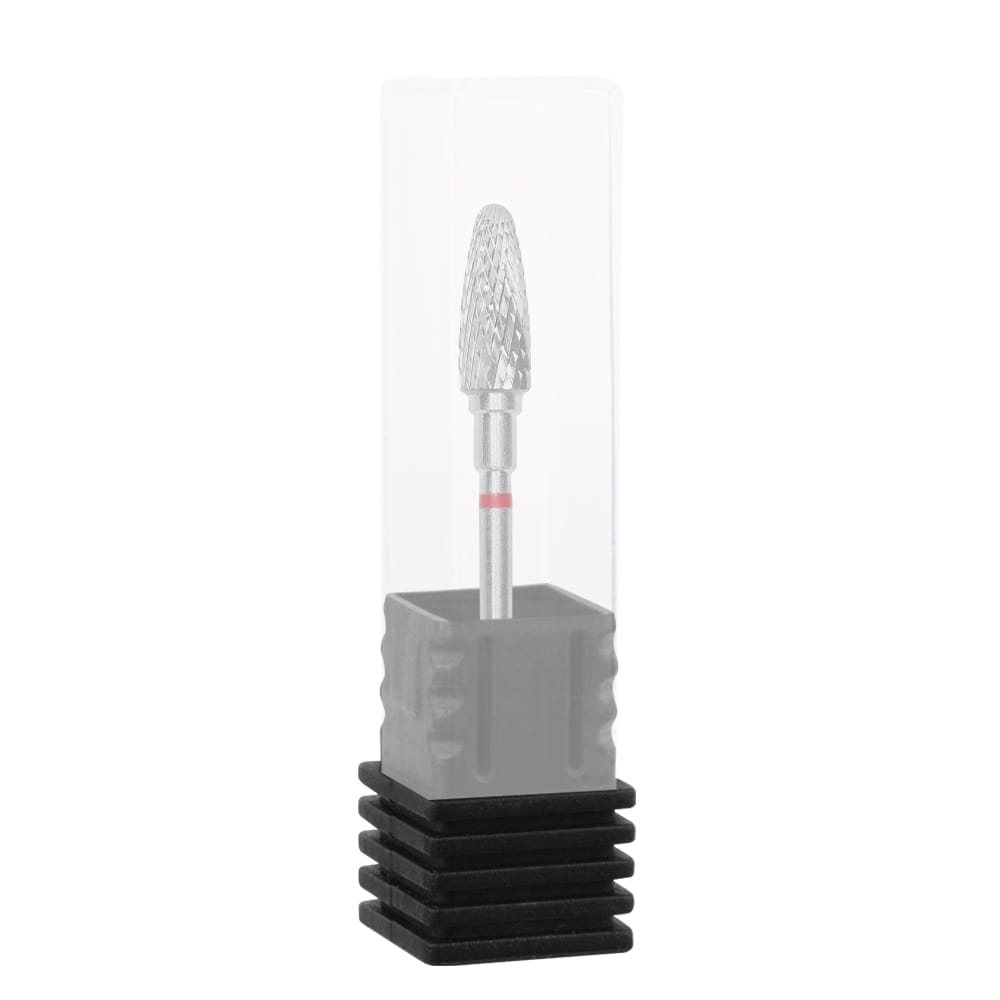 Czerwone nacięcie o miękkiej ziarnistości, oznacza delikatne cięcie krzyżowo-poprzeczne (twardość frezu zależy od liczby i głębokości ostrzy). Kształt "kukurydzy" do korekty sztucznych paznokci, usuwania lakieru żelowego i twardych powłok.