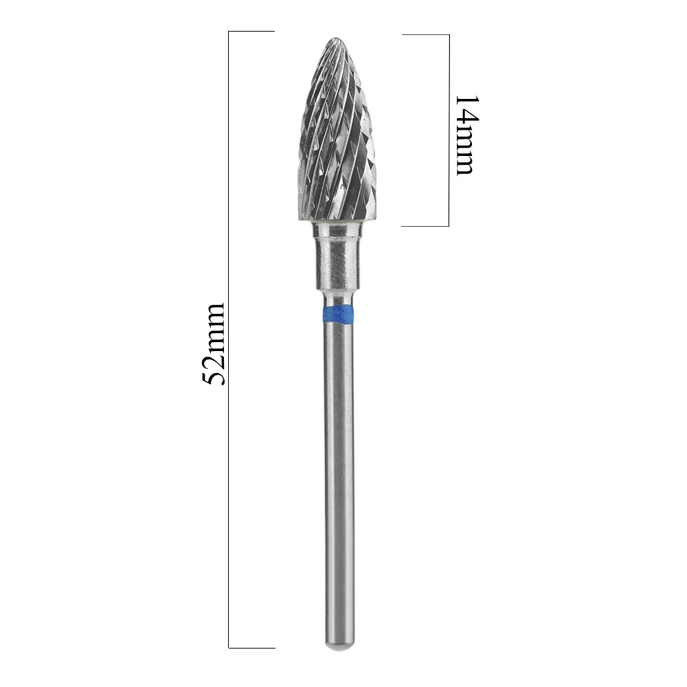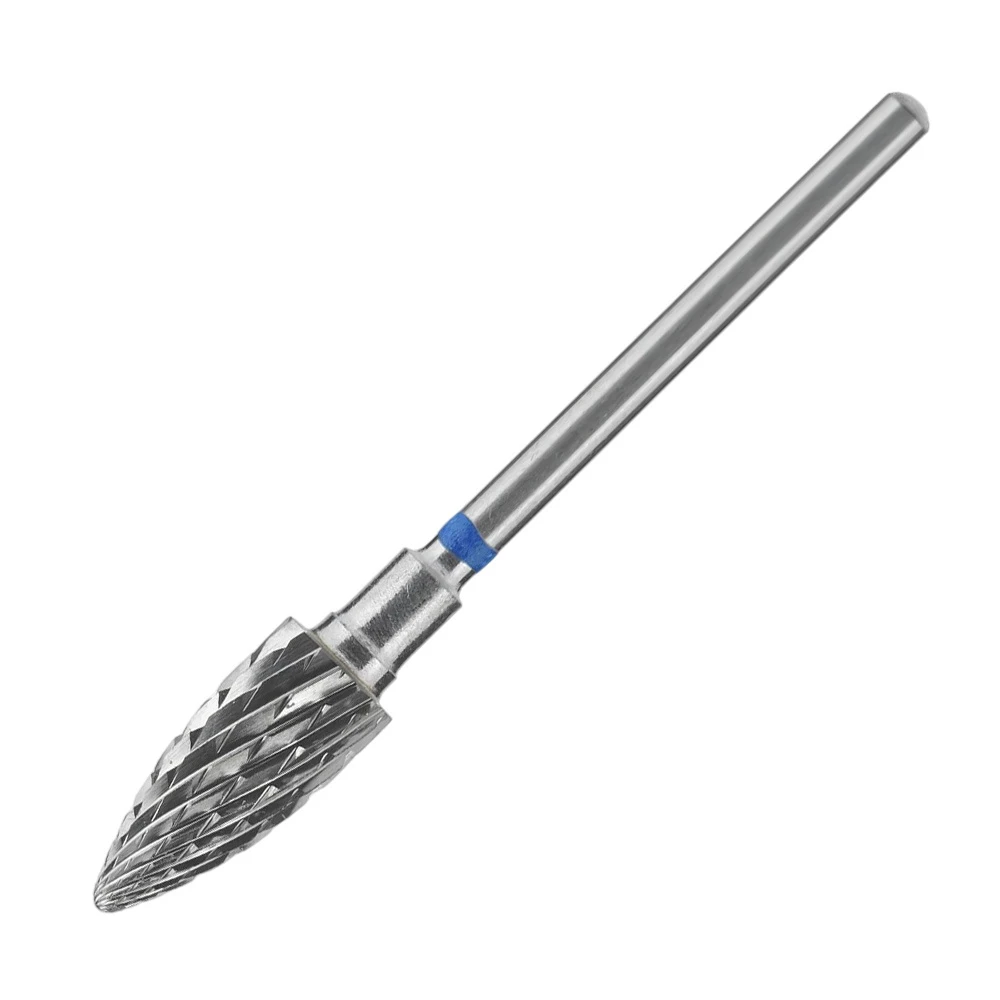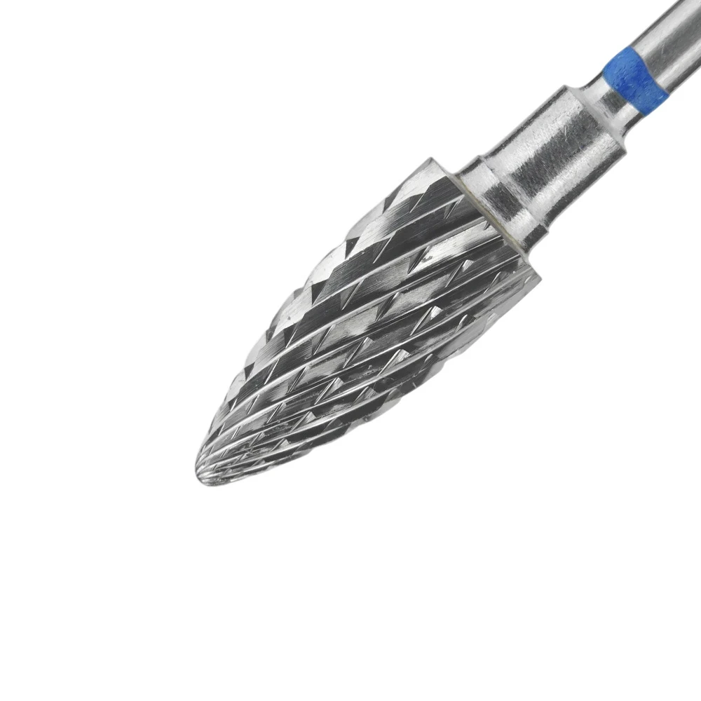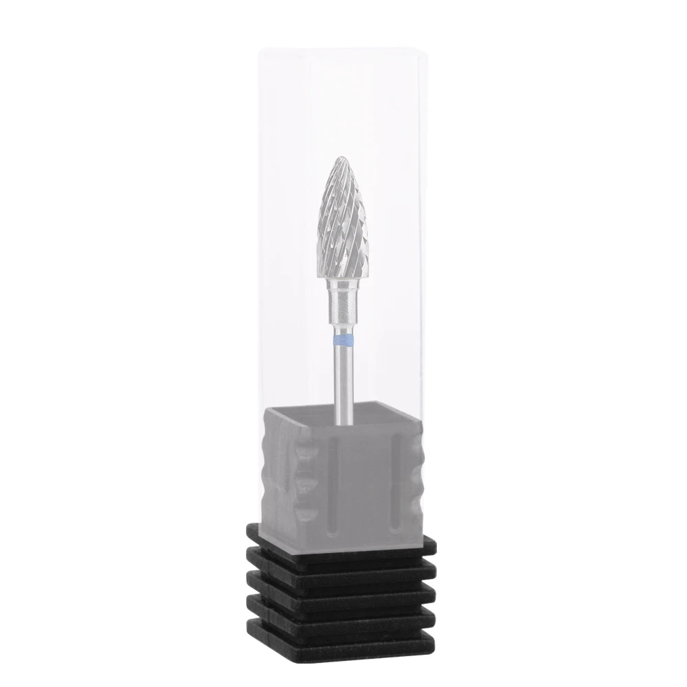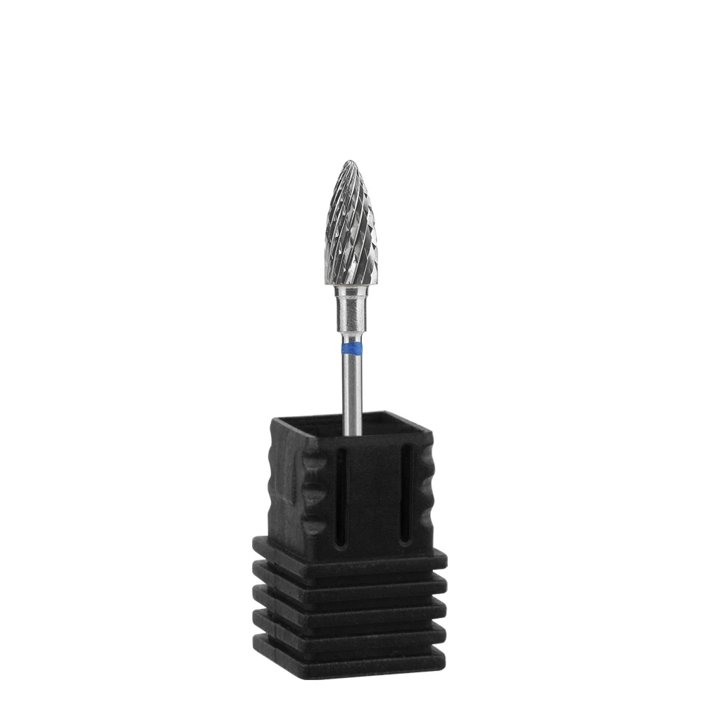 Frez z węglika spiekanego do maszynki do manicure/pedicure. Niebieskie nacięcie o średniej ziarnistości, wskazuje na średnie cięcie proste i krzyżowe (o twardości frezu świadczy liczba i głębokość ostrzy).