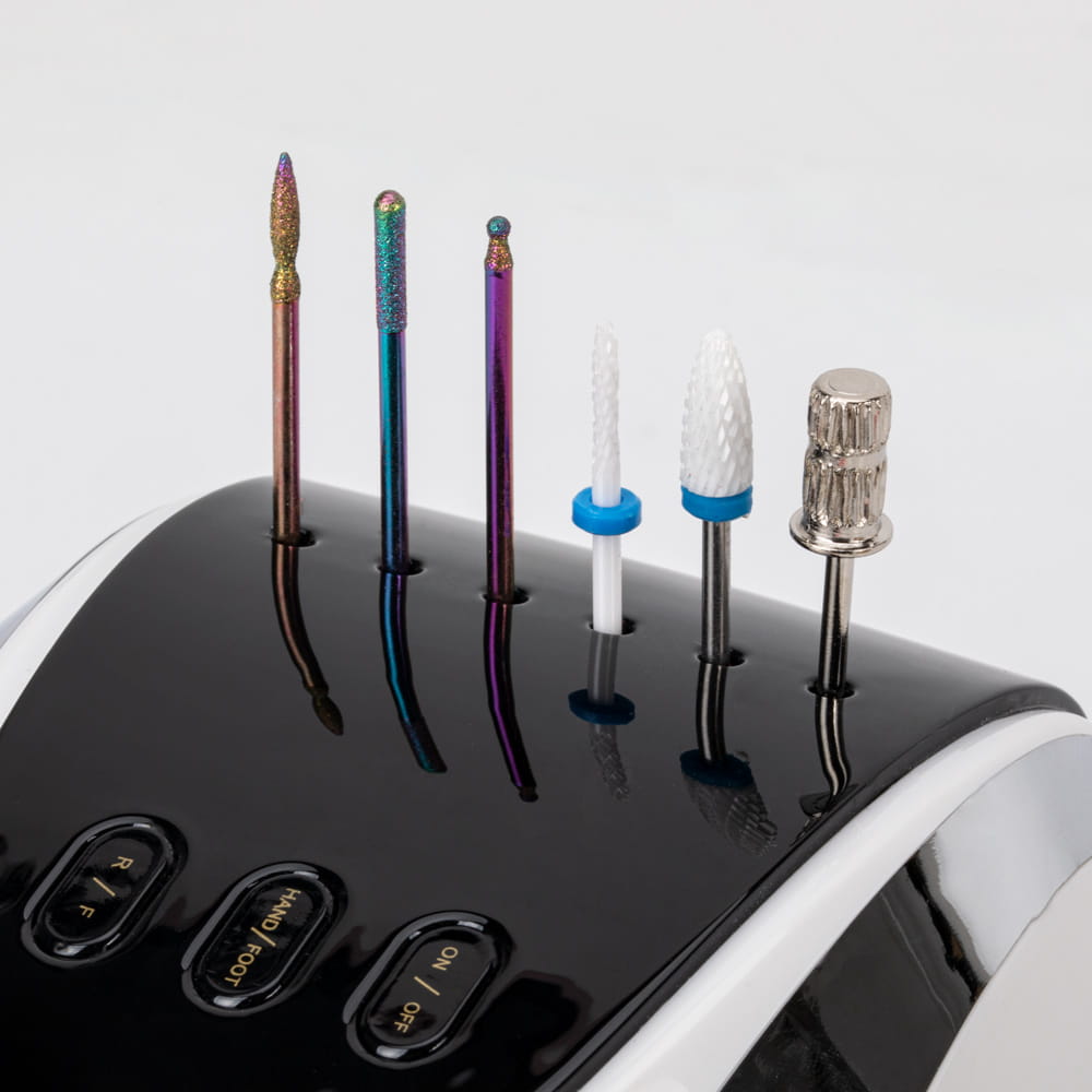 M13 to profesjonalna, wysokiej jakości frezarka o doskonałych parametrach użytkowych – ogromnej mocy oraz skali obrotów, pozwalających na pracę zarówno przy manicure jak i pedicure wraz z opracowaniem podeszwy stóp. Będzie idealna zarówno w codziennej pracy salonu stylizacji paznokci jak i użytku domowego przez bardzo wymagające użytkowniczki, poszukujące niezawodnych rozwiązań.