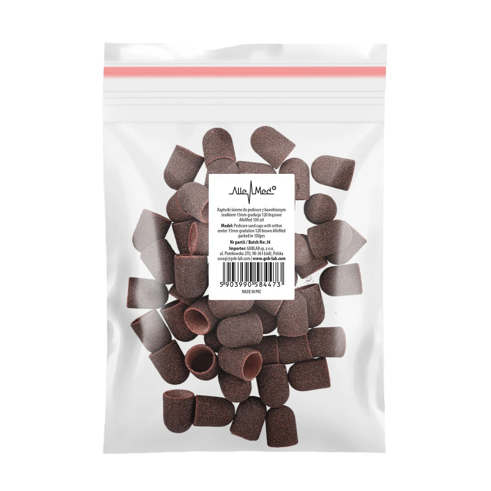Kapturki ścierne do pedicure z bawełnianym środkiem 13mm gradacja 120 brązowe AlleMed 100 szt