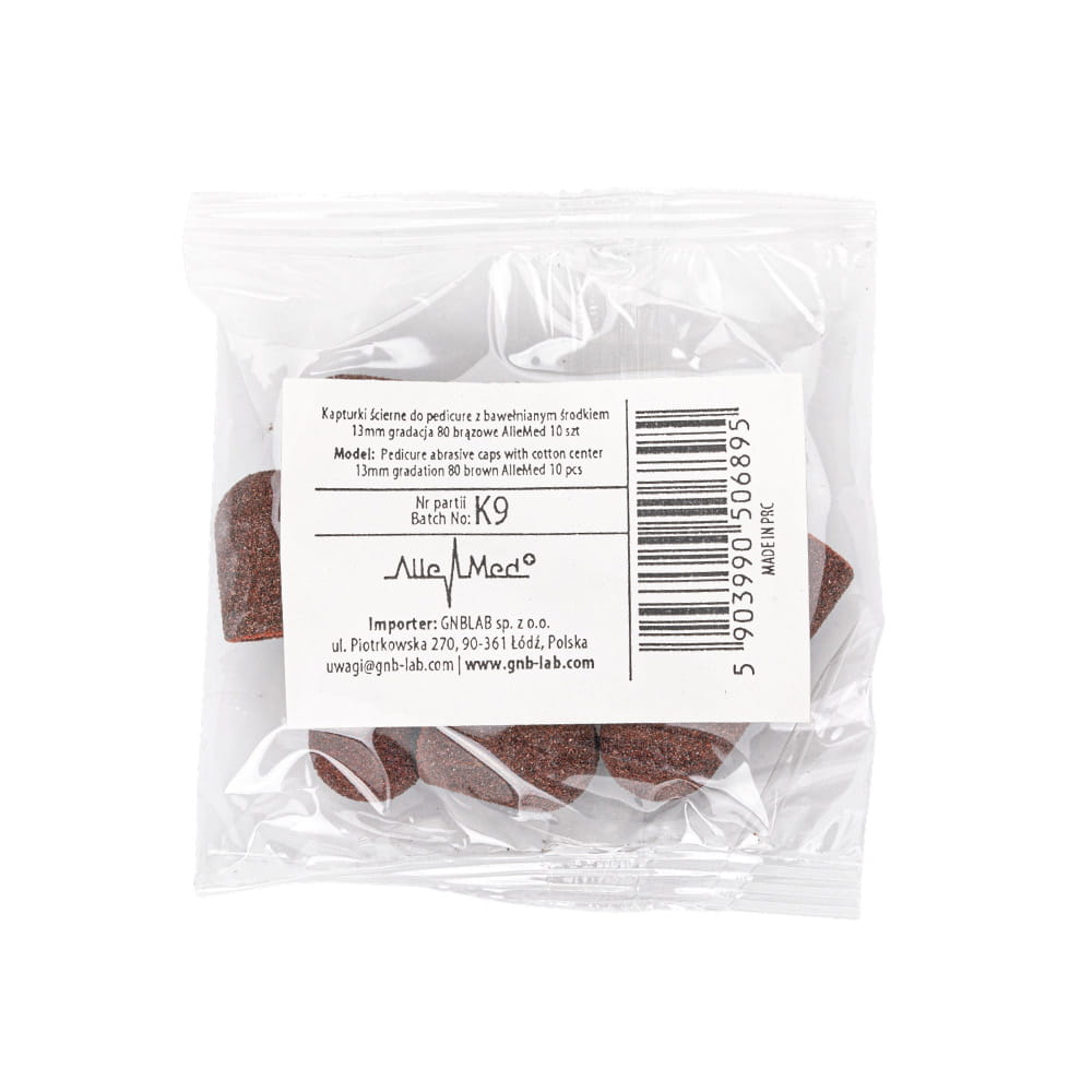 Kapturki ścierne do pedicure z bawełnianym środkiem 13mm gradacja 80 brązowe AlleMed 10 szt