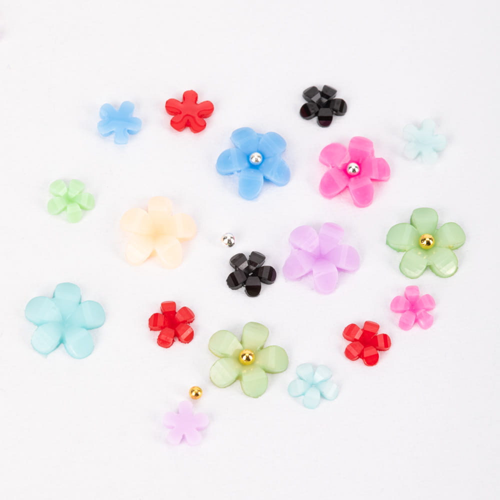 Kasetka z ozdobami akrylowe kwiatki Molly Nails mix kolorów Nr 1 ok. 300 sztuk