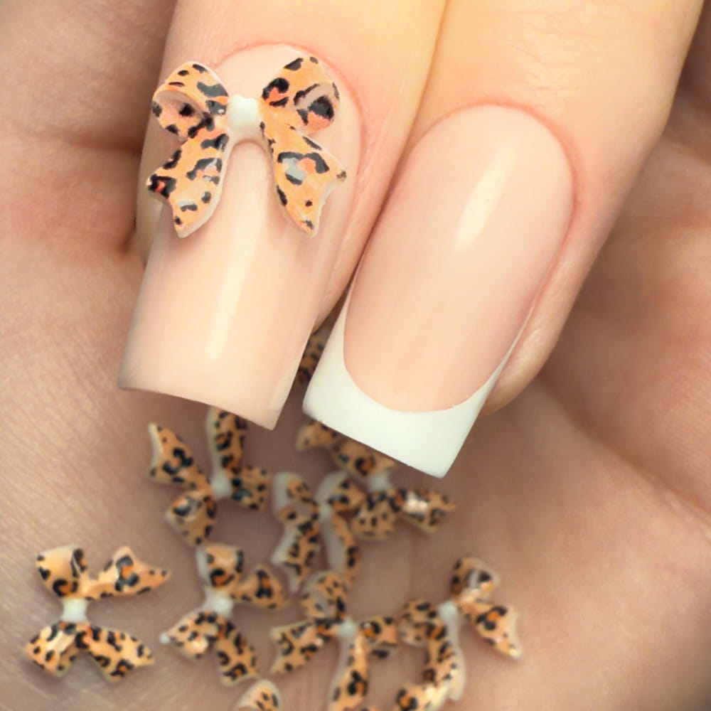 Kasetka z ozdobami kokardki 3D Molly Nails panterka 45 sztuk
