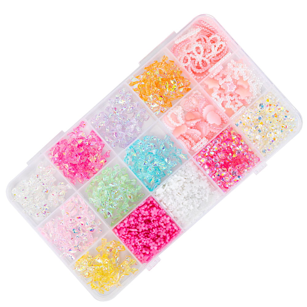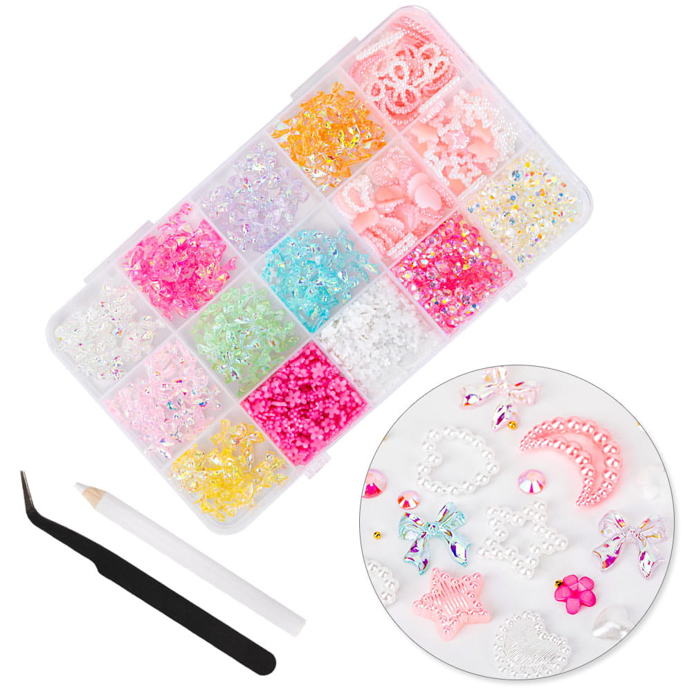 Dodaj paznokciom efektu WOW dzięki zestawowi ozdób 3D zamkniętemu w praktycznej kasetce z przegródkami. Różnorodne kształty, kolory i wykończenia pozwalają tworzyć unikalne stylizacje – od subtelnych po efektowne.