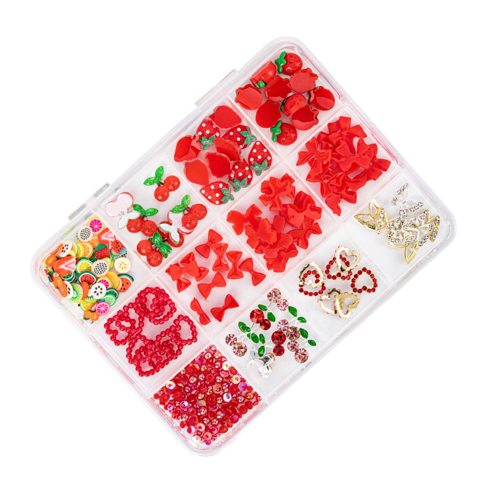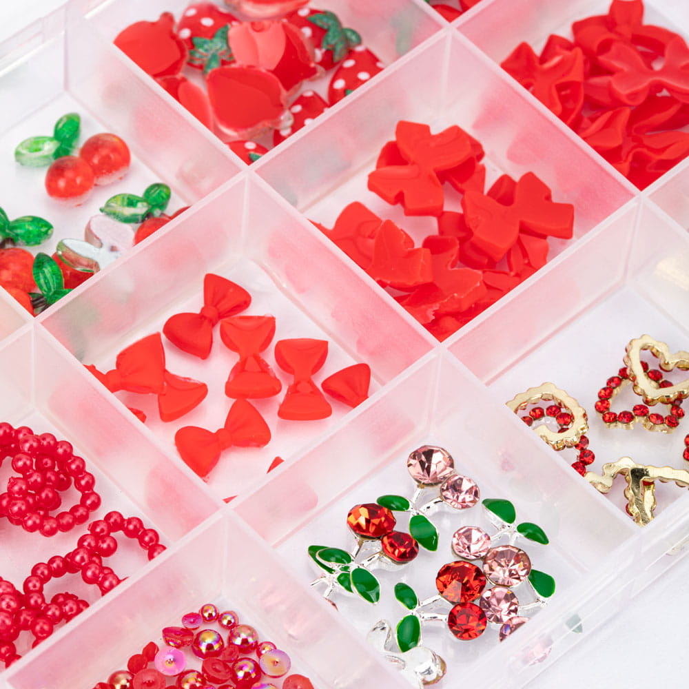 Dodaj paznokciom efektu WOW dzięki zestawowi ozdób 3D zamkniętemu w praktycznej kasetce z przegródkami. Różnorodne kształty, kolory i wykończenia pozwalają tworzyć unikalne stylizacje – od subtelnych po efektowne.