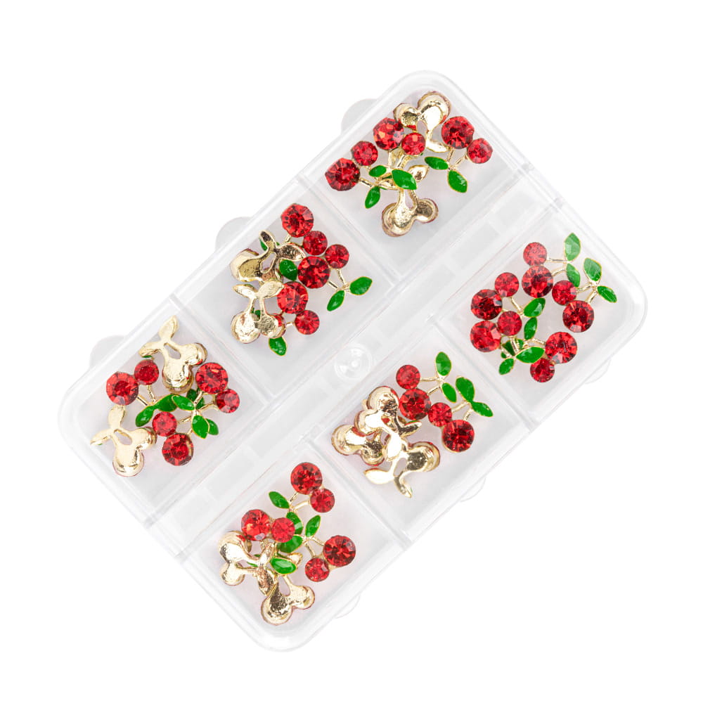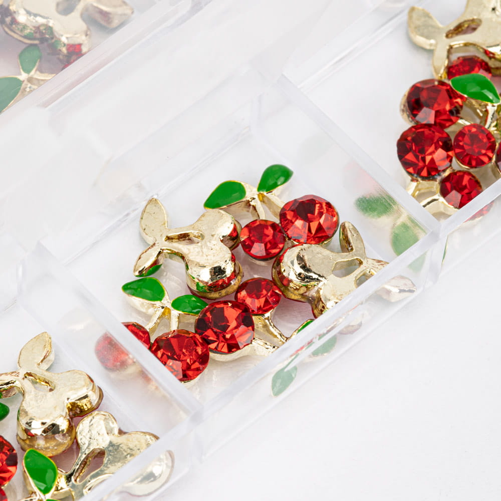 Kasetka z ozdobami wiśnie z cyrkoniami 30 sztuk