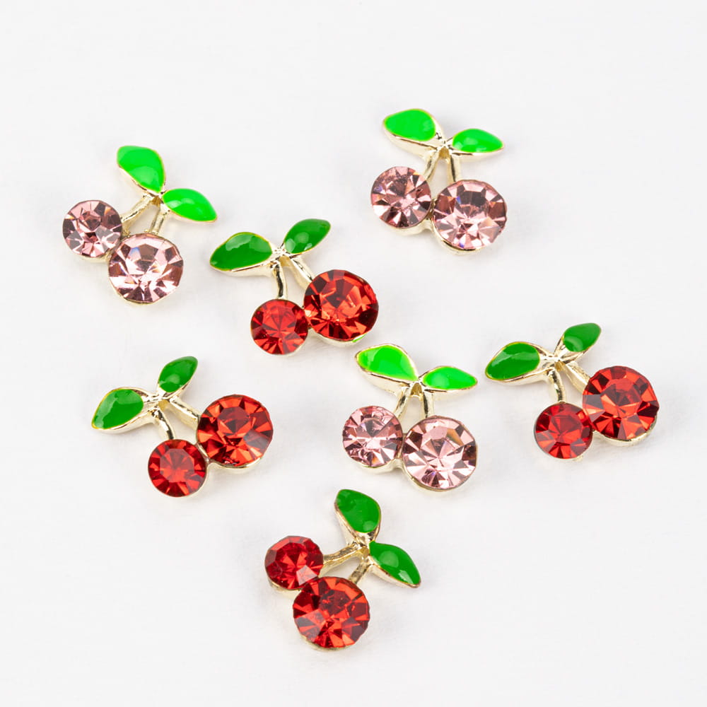 Dodaj swoim stylizacjom wyjątkowego blasku! Zestaw uroczych ozdób w kształcie wisienek z błyszczącymi cyrkoniami to idealny dodatek do manicure hybrydowego, żelowego lub akrylowego.