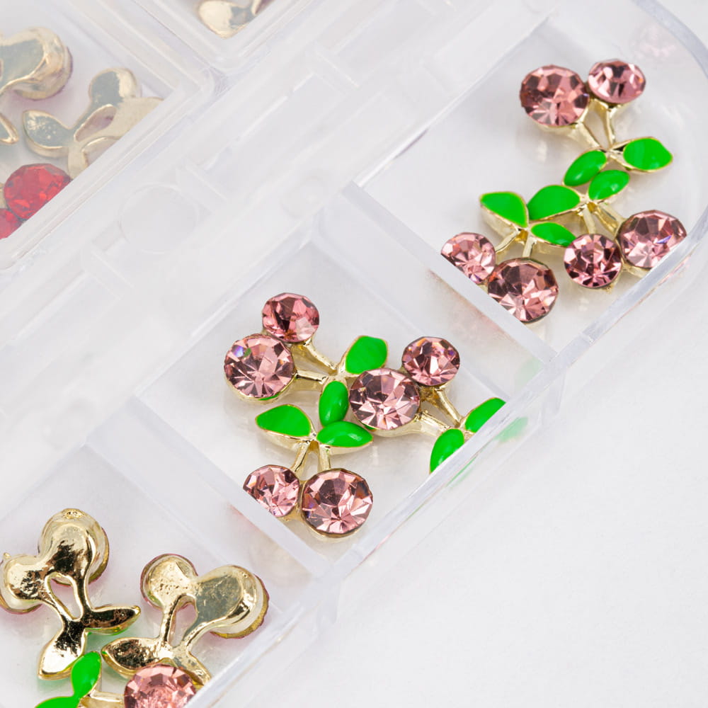Kasetka z ozdobami wiśnie z cyrkoniami Molly Nails 36 sztuk