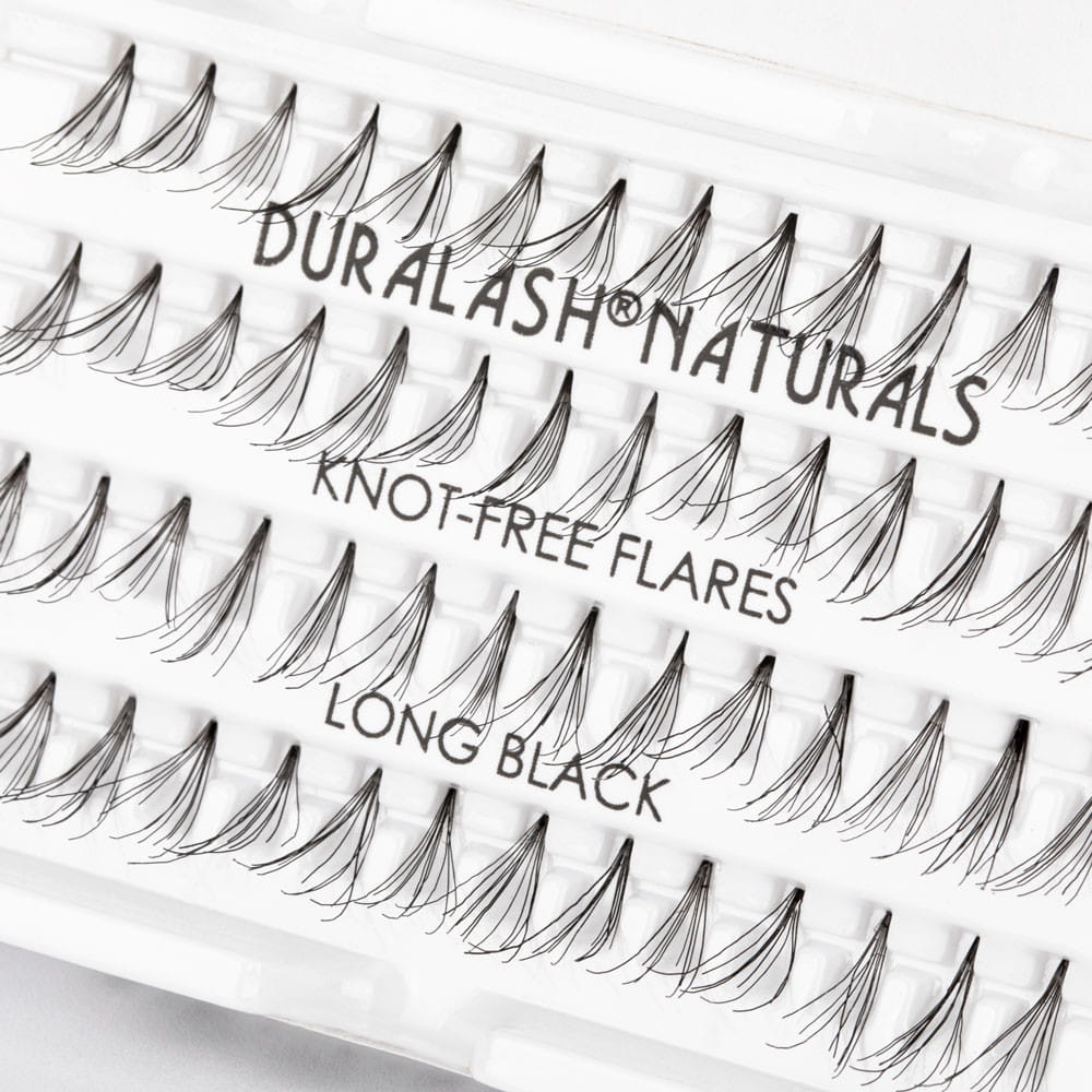 Ardell Singles Duralash Naturals Knot-Free Flares Long Black to wysokiej jakości, długie kępki rzęs, które charakteryzują się brakiem tak zwanych węzełków , co oznacza, że nie posiadają widocznych i odznaczających się zakończeń, daje to bardziej naturalny efekt.