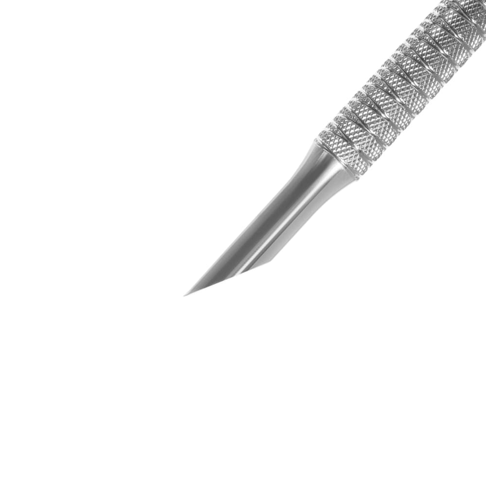- Korzystanie ze ściętej części roboczej: Użyj ściętej części roboczej ostrza, aby unieść i odepchnąć naskórek. Delikatnie i ostrożnie chodź wzdłuż naskórka, odsuwając go od paznokcia.
