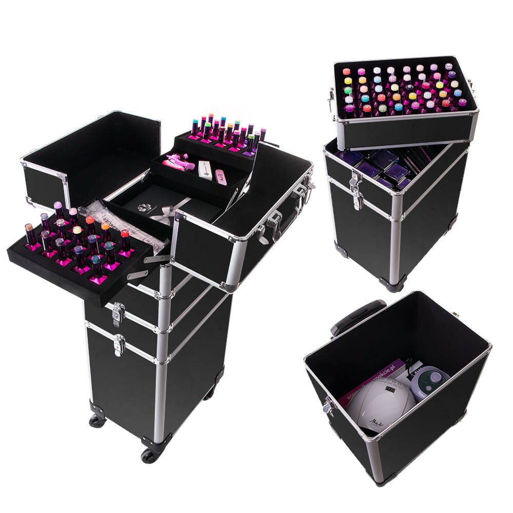 Funkcjonalny kuferek kosmetyczny idealny dla stylistek paznokci, kosmetyczek, wizażystek pracujących w terenie lub do przechowywania kosmetyków w domu.