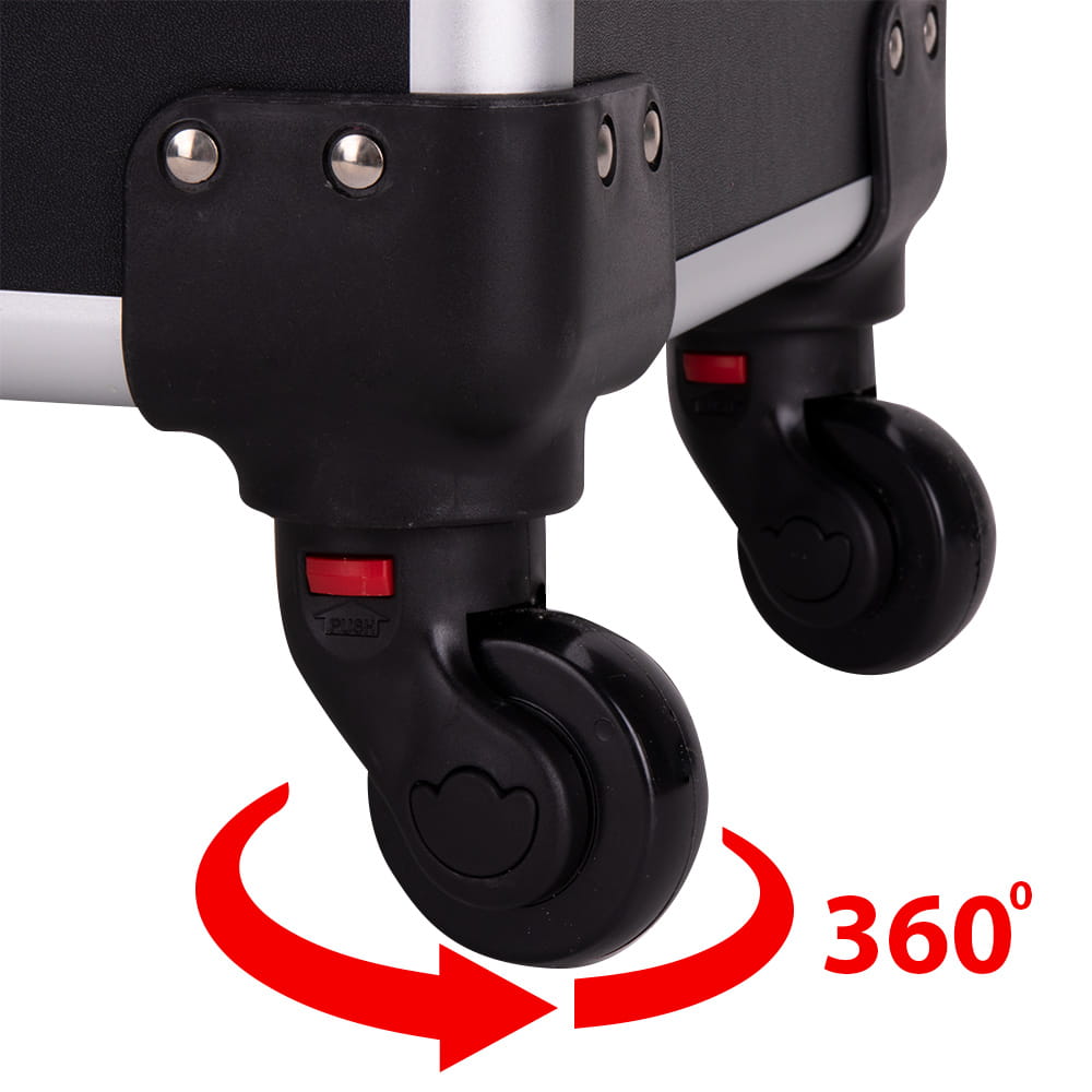 - Walizka posiada 4 obrotowe kółka 360stopni. Niezwykle wygodna i stabilna konstrukcja niezależnie od sposobu prowadzenia kufra!