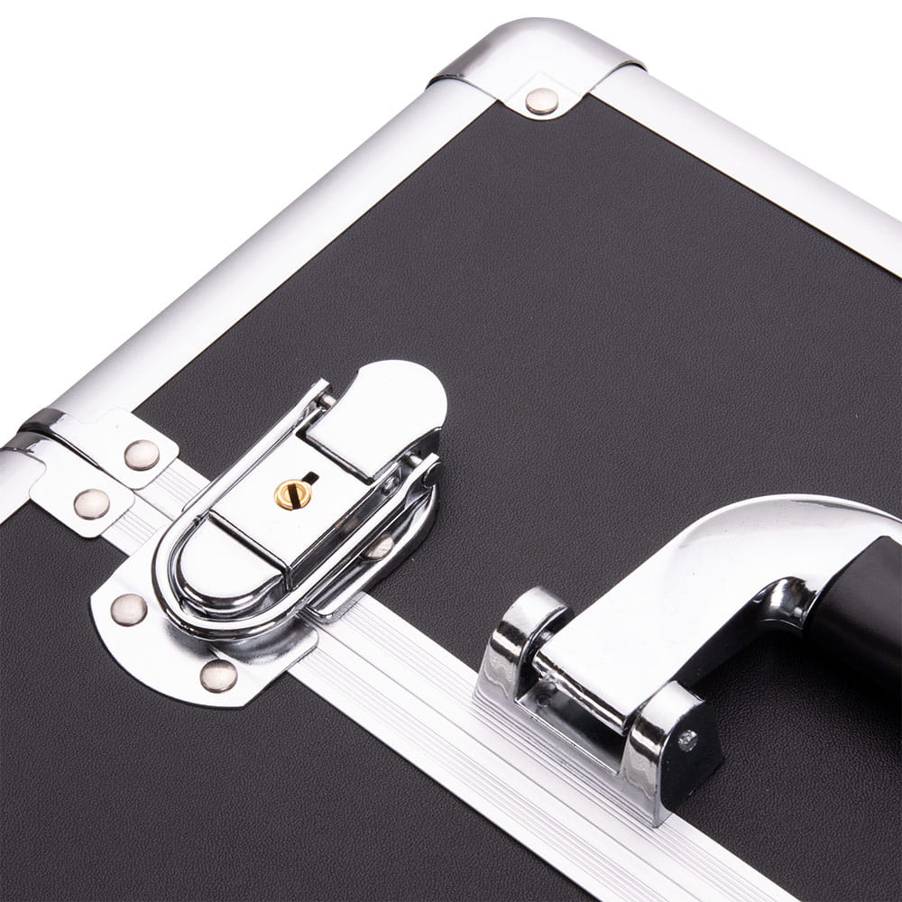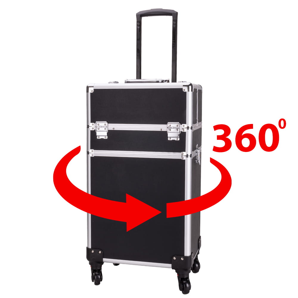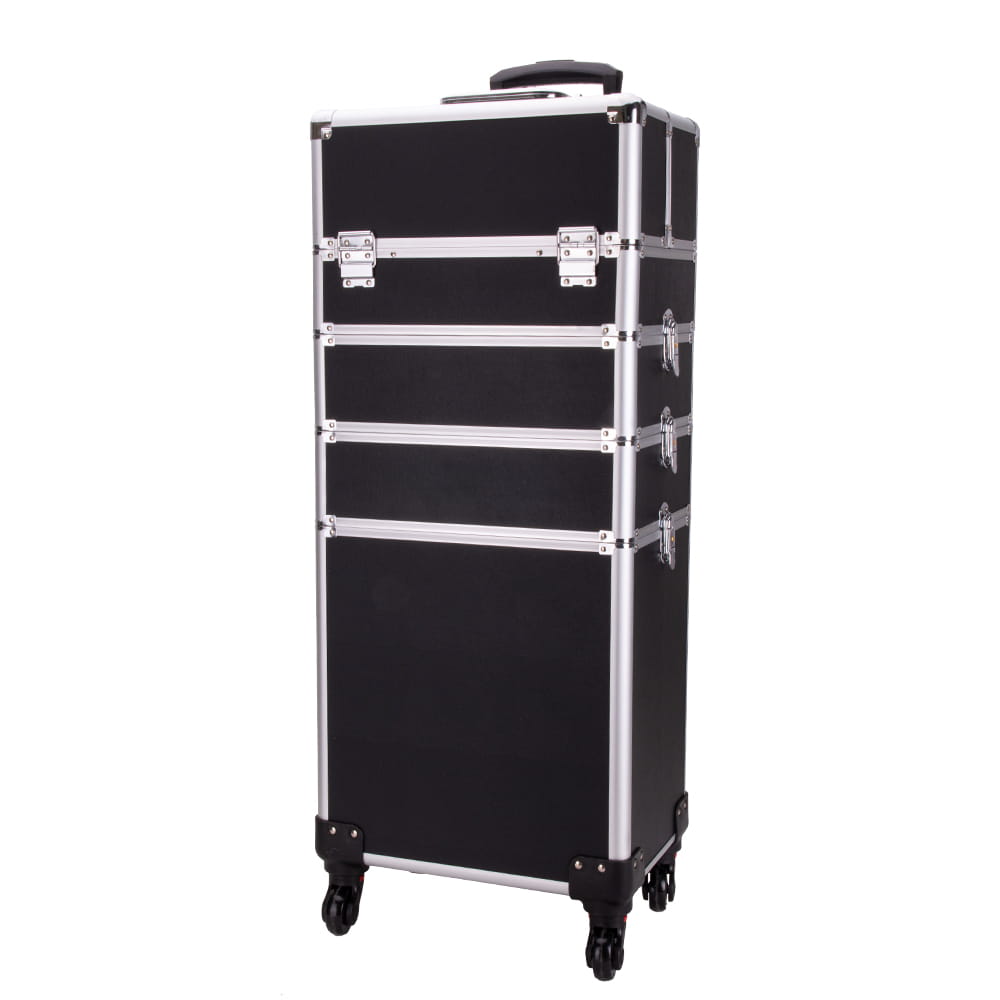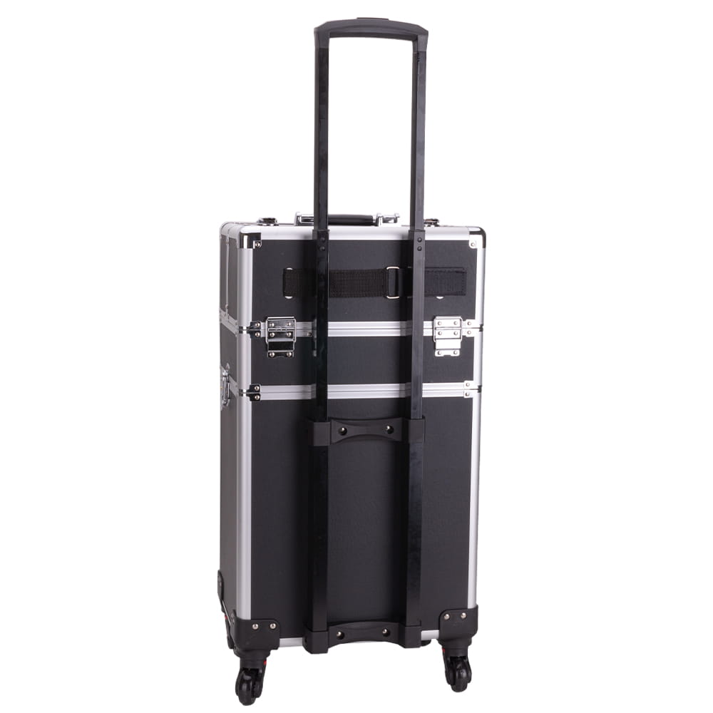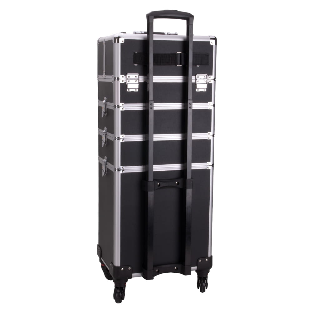 Kuferek kosmetyczny XXXL 4w1 walizka kosmetyczna na kółkach obrotowych 360 - Czarny gładki ze srebrnymi okuciami