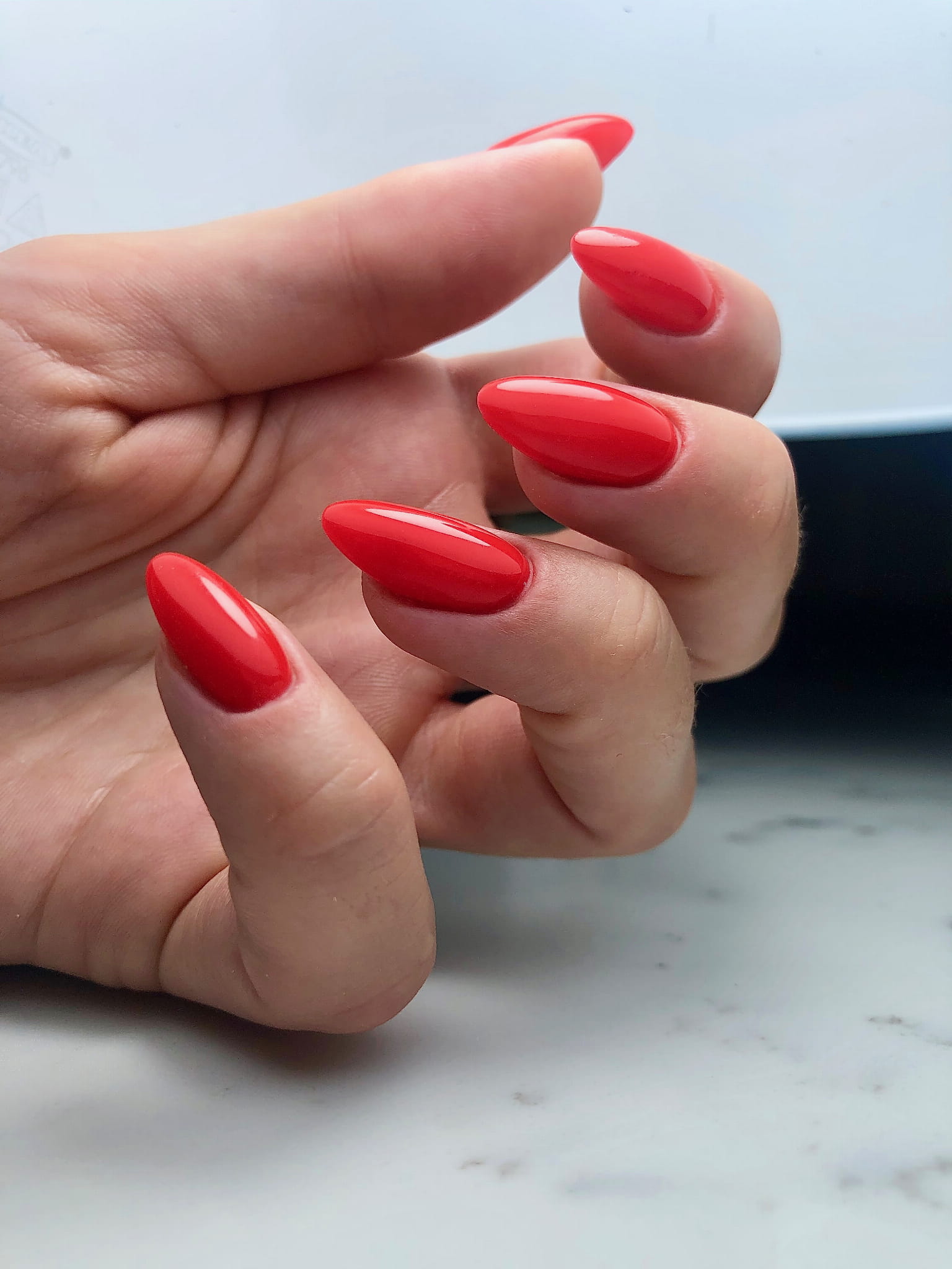 - Na utwardzoną bazę nakładamy warstwę lakieru hybrydowego i utwardzamy w lampie.