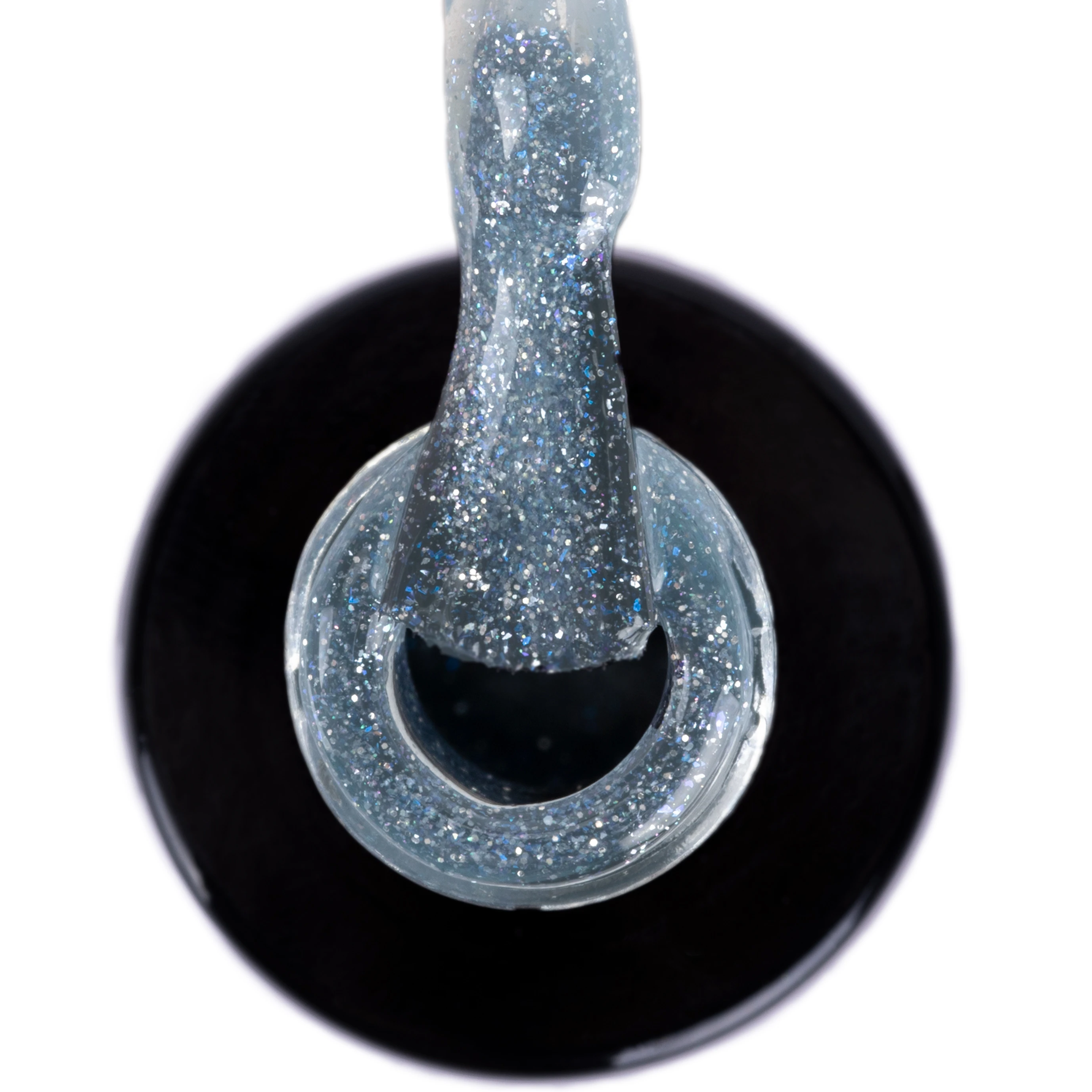 155. Srebrzysty brokat zatopiony w niebieskiej opoce. Szlachetny miks przenikających się drobin i ciekawego koloru to recepta na udany manicure.