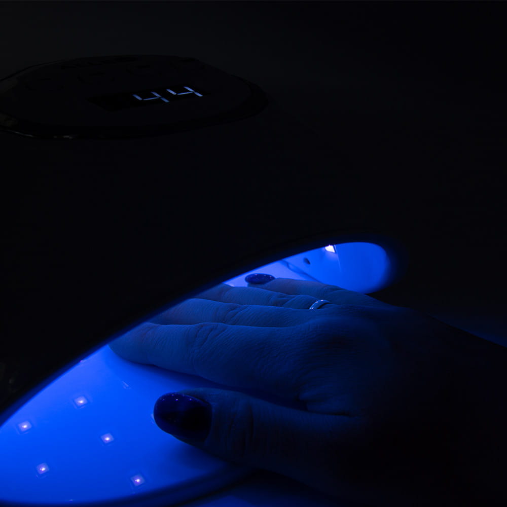 Lampa jest idealna do utwardzania wszystkich 5 paznokci na raz ze względu na doskonałe ułożenie diod utwardzające paznokcie z każdej strony, również przy wałach okołopaznokciowych.