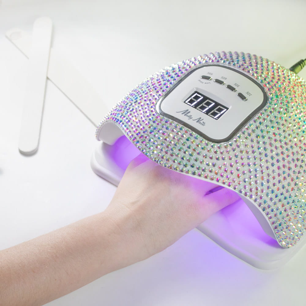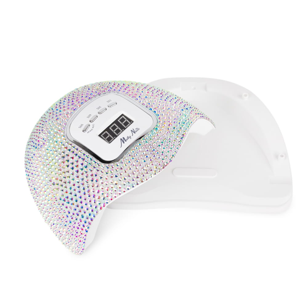 Lampa do paznokci LED/UV 150W Molly Nails do lakierów hybrydowych żeli i akrylożeli w cyrkonie crystal silver holo X5 MAX