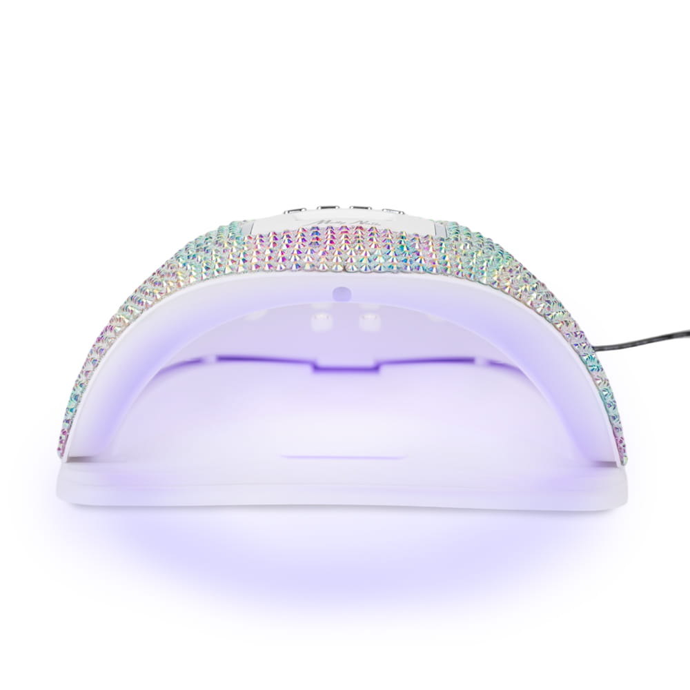 Lampa do manicure i pedicure LED/UV dedykowana do utwardzania lakierów hybrydowych, żeli oraz akrylożeli. Powierzchnia lampy wykończona cyrkoniami zapewnia jej unikalny design i sprawia, że może stanowić również element dekoracyjny.