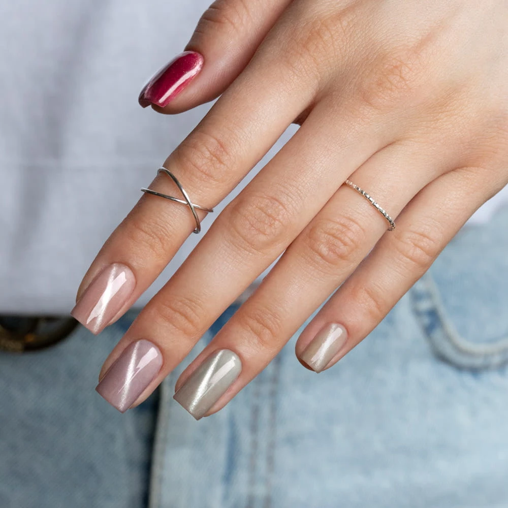 - popularny efekt kociego oka "cat eye" na paznokciach