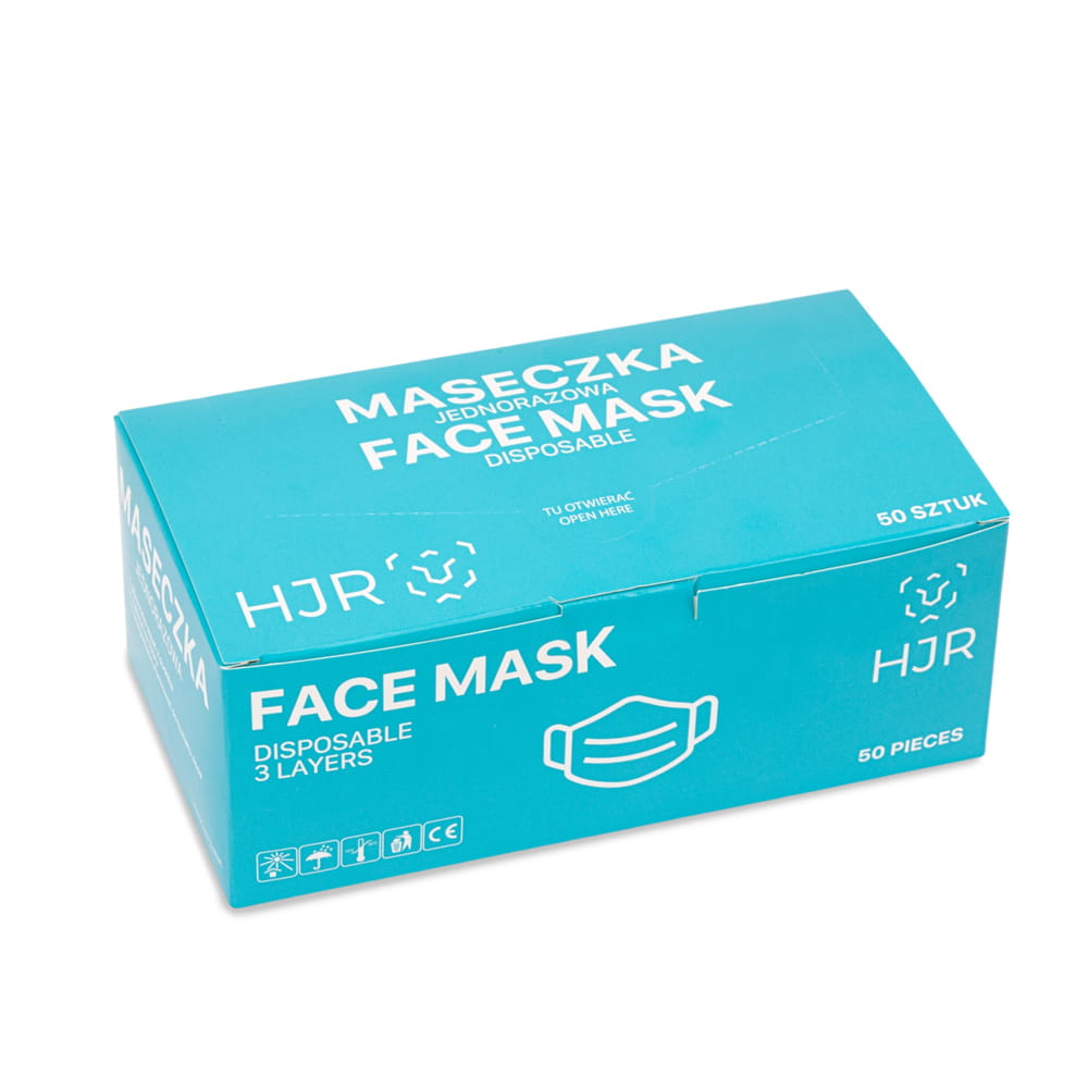 Maski maseczki ochronne jednorazowe trzywarstwowe HJR niebieskie 50 szt