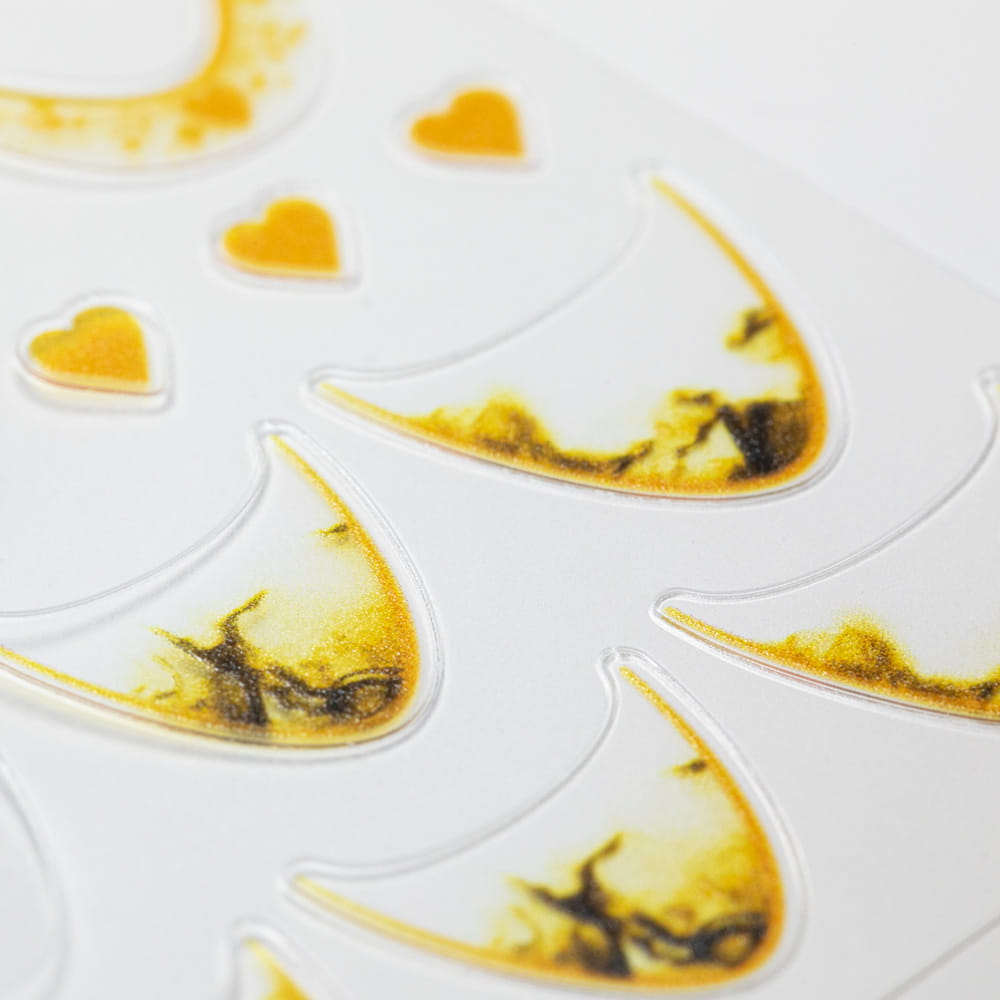 - Naklejki nadają się do użycia z lakierami klasycznymi, hybrydowymi oraz żelami UV i akrylożelami.