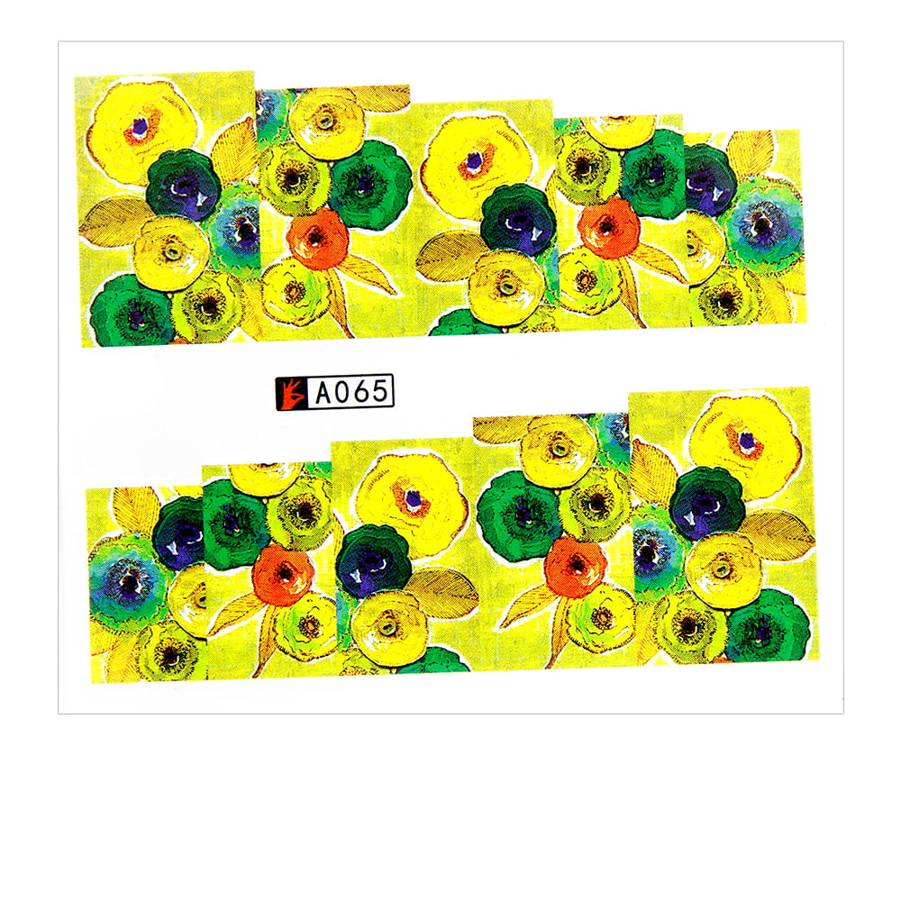 Naklejki wodne do paznokci arkusz 6,5 x 5,5 cm na 10 palców a Nr 065