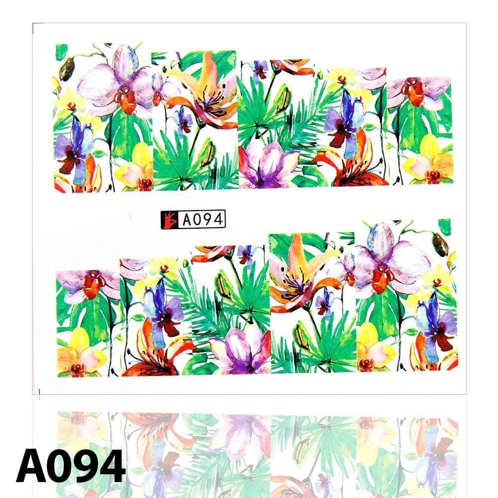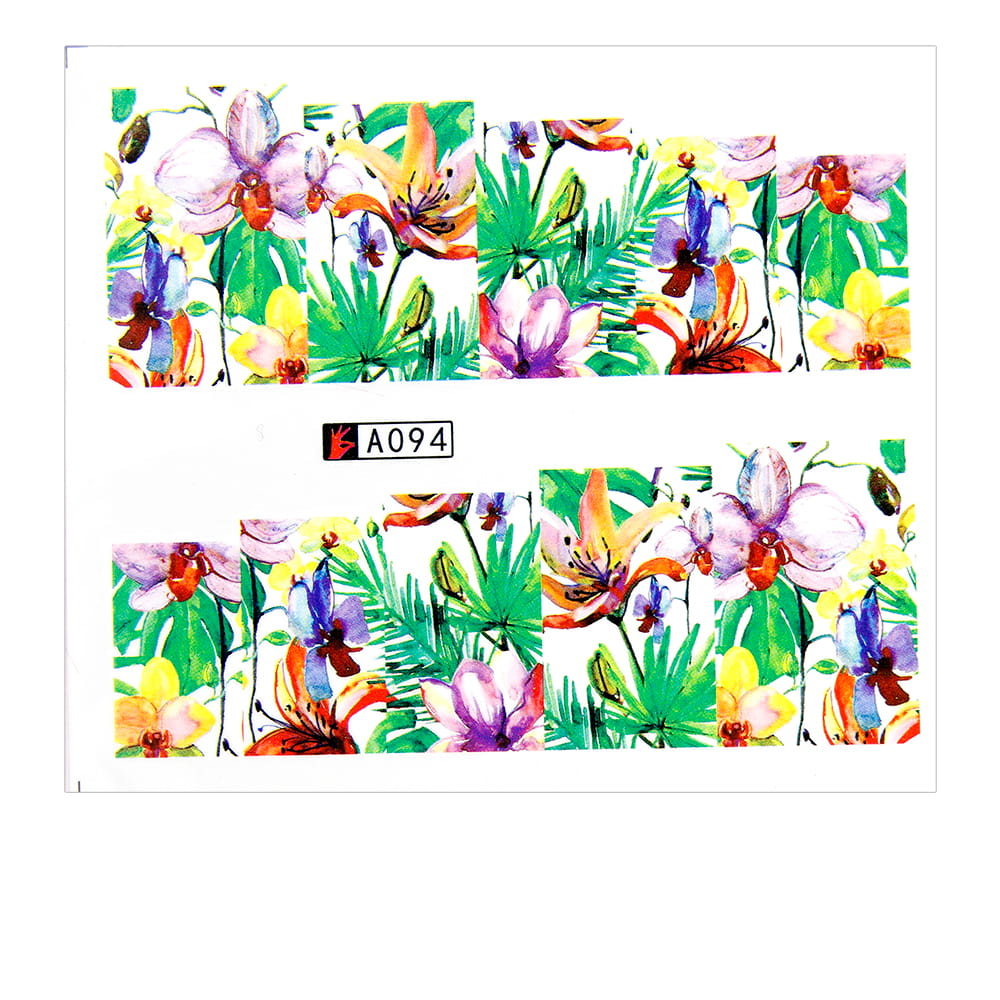 Naklejki wodne do paznokci arkusz 6,5 x 5,5 cm na 10 palców a Nr 094