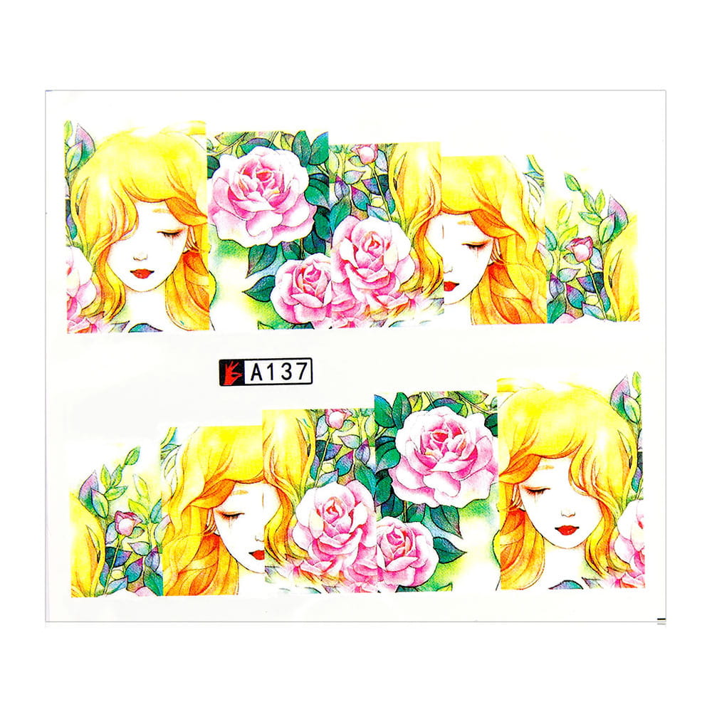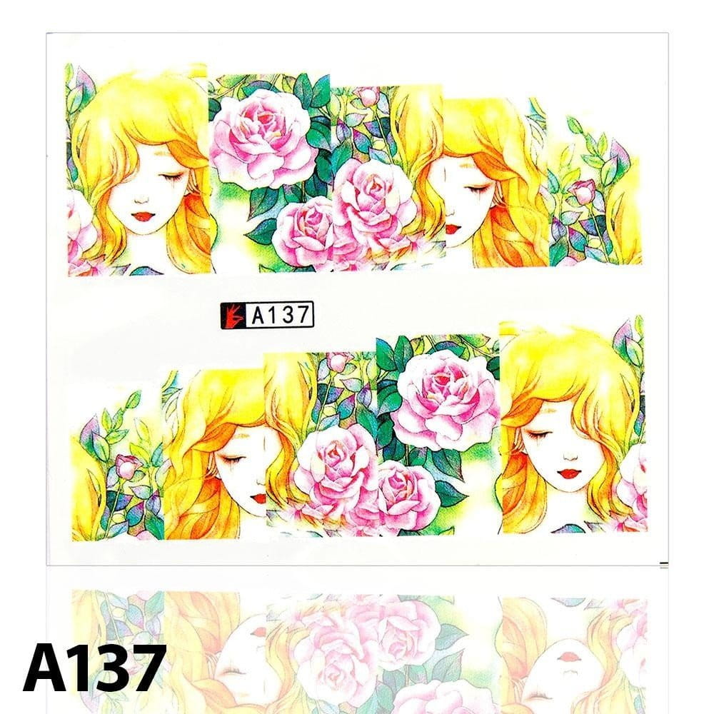 Naklejki wodne do paznokci arkusz 6,5 x 5,5 cm na 10 palców a Nr 137