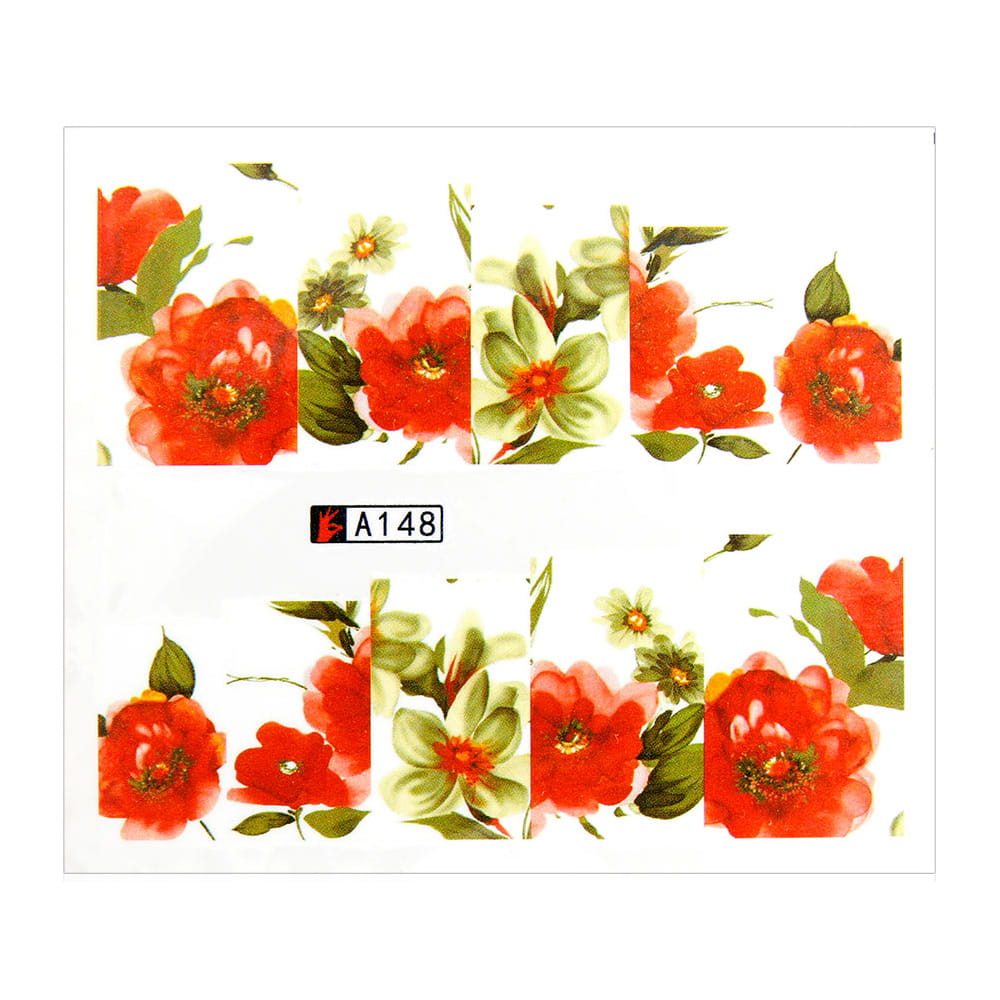 Naklejki wodne do paznokci arkusz 6,5 x 5,5 cm na 10 palców a Nr 148