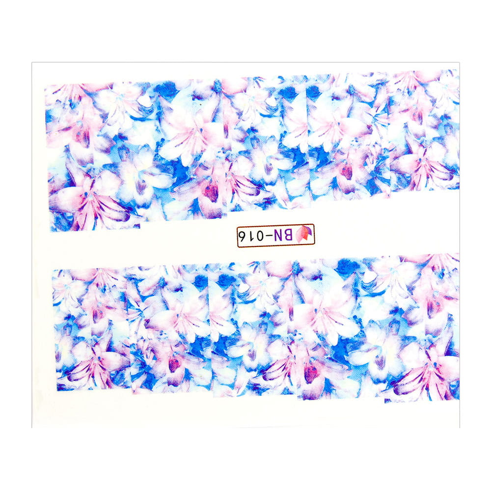 Naklejki wodne do paznokci arkusz 6,5 x 5,5 cm na 10 palców bn Nr 016