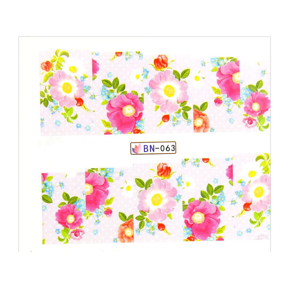 Naklejki wodne do paznokci arkusz 6,5 x 5,5 cm na 10 palców bn Nr 063