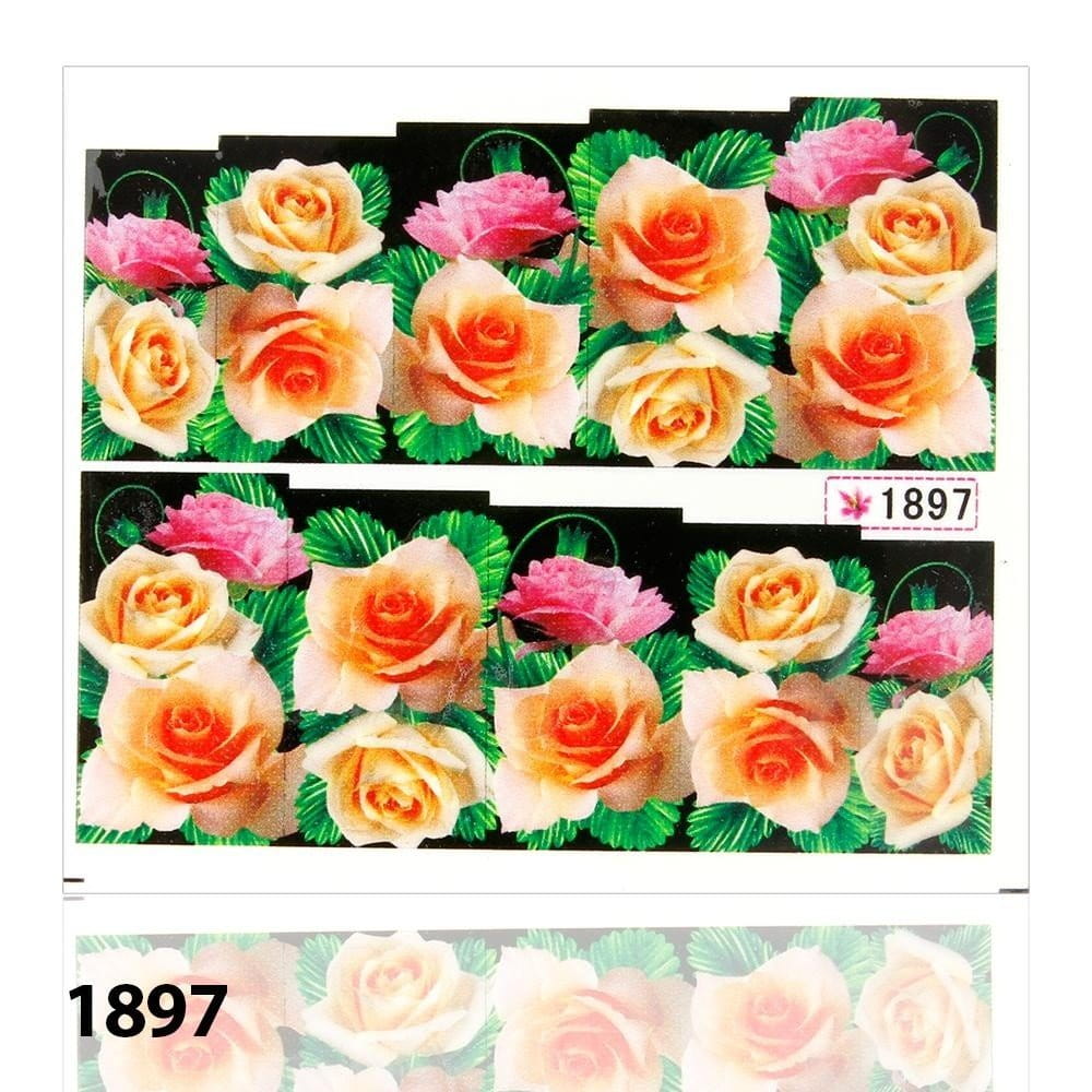 Naklejki wodne do paznokci arkusz 6,5 x 5,5 cm na 10 palców yb Nr 1897