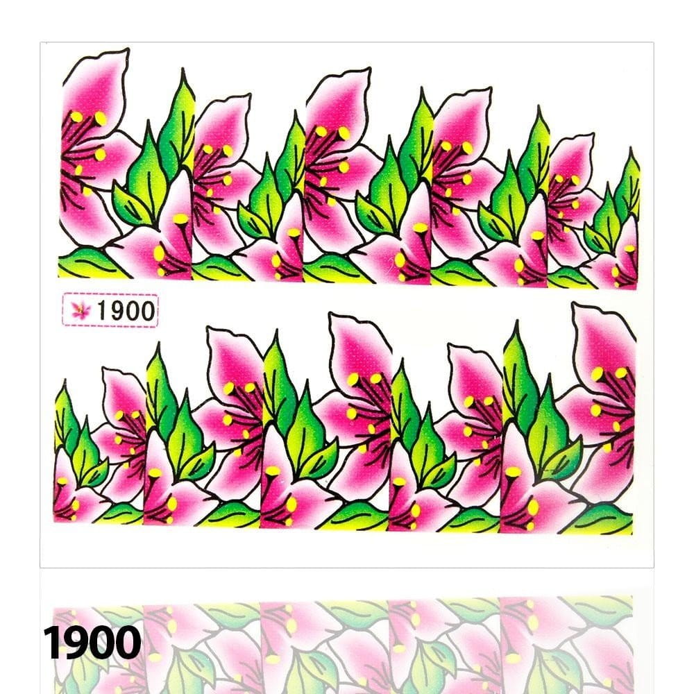 Naklejki wodne do paznokci arkusz 6,5 x 5,5 cm na 10 palców yb Nr 1900