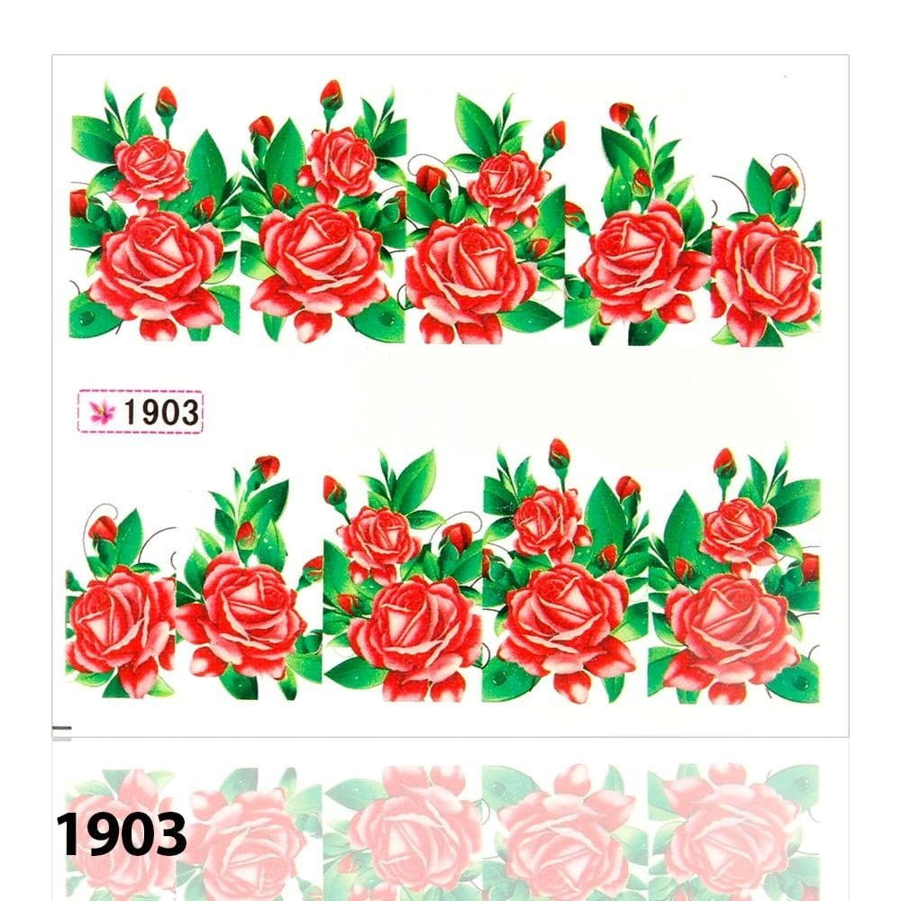 Naklejki wodne do paznokci arkusz 6,5 x 5,5 cm na 10 palców yb Nr 1903