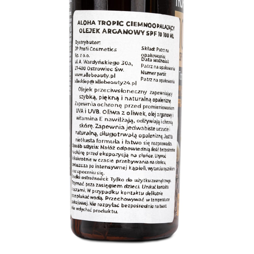 Skład Olejek do opalania arganowy SPF10 Dark Tanning dry oil Aloha Tropic 100ml
