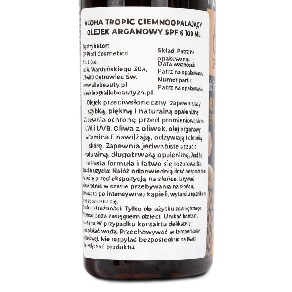 Skład Olejek do opalania arganowy SPF6 Dark Tanning dry oil Aloha Tropic 100ml